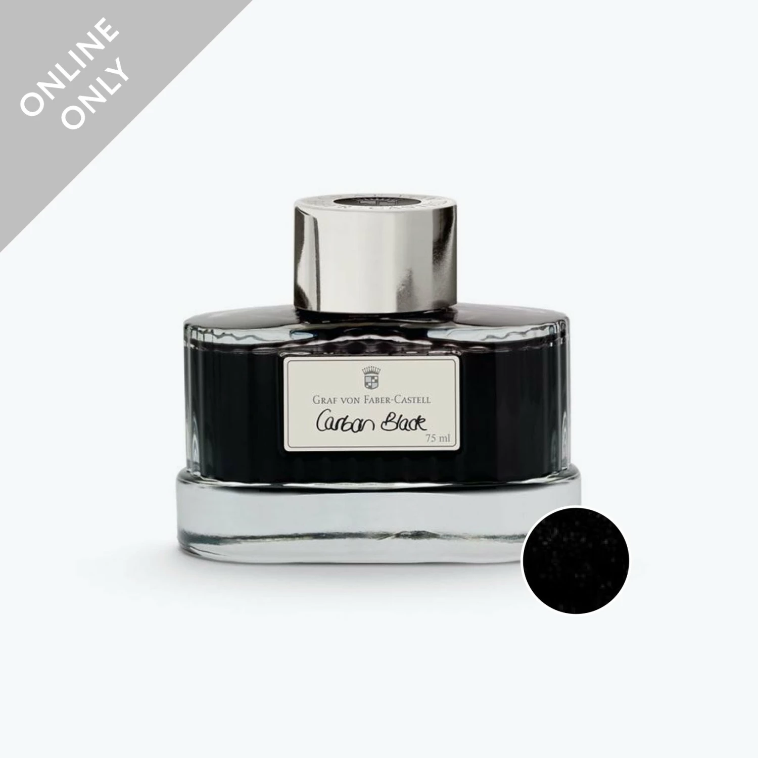 TheΒ Graf von Faber-CastellΒ carbon blackΒ is the perfect fast drying, smooth flowing fountain pen ink.Β This ink isΒ indelible, which means it isΒ smudge-resistant, reproducible, light-fast and permanent, cannot be erased and document proof.
