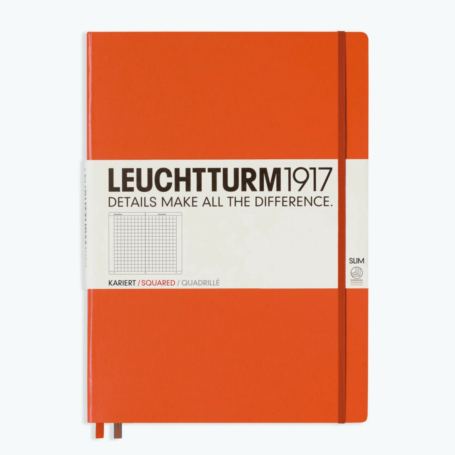 TheΒ orangeΒ Leuchtturm1917Β A4+ is a simple yet sophisticated notebook, making it an ideal companion for all walks of life. Leuchtturm1917 notebooks are designed very carefully down to the last detail. The pages are numbered and each page has space at the top for the date, while a blank table of content makes it easy to organise notes. There are several perforated pages and a gusseted pocket at the back of the notebook, as well as a set of self-adhesive stickers for labelling and archiving.