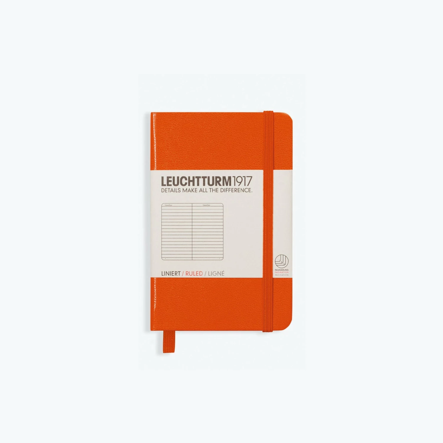 TheΒ orangeΒ Leuchtturm1917Β A7Β is a simple yet sophisticated notebook, making it an ideal companion for all walks of life. Leuchtturm1917 notebooks are designed very carefully down to the last detail. The pages are numbered and each page has space at the top for the date, while a blank table of content makes it easy to organise notes. There are several perforated pages and a gusseted pocket at the back of the notebook, as well as a set of self-adhesive stickers for labelling and archiving.