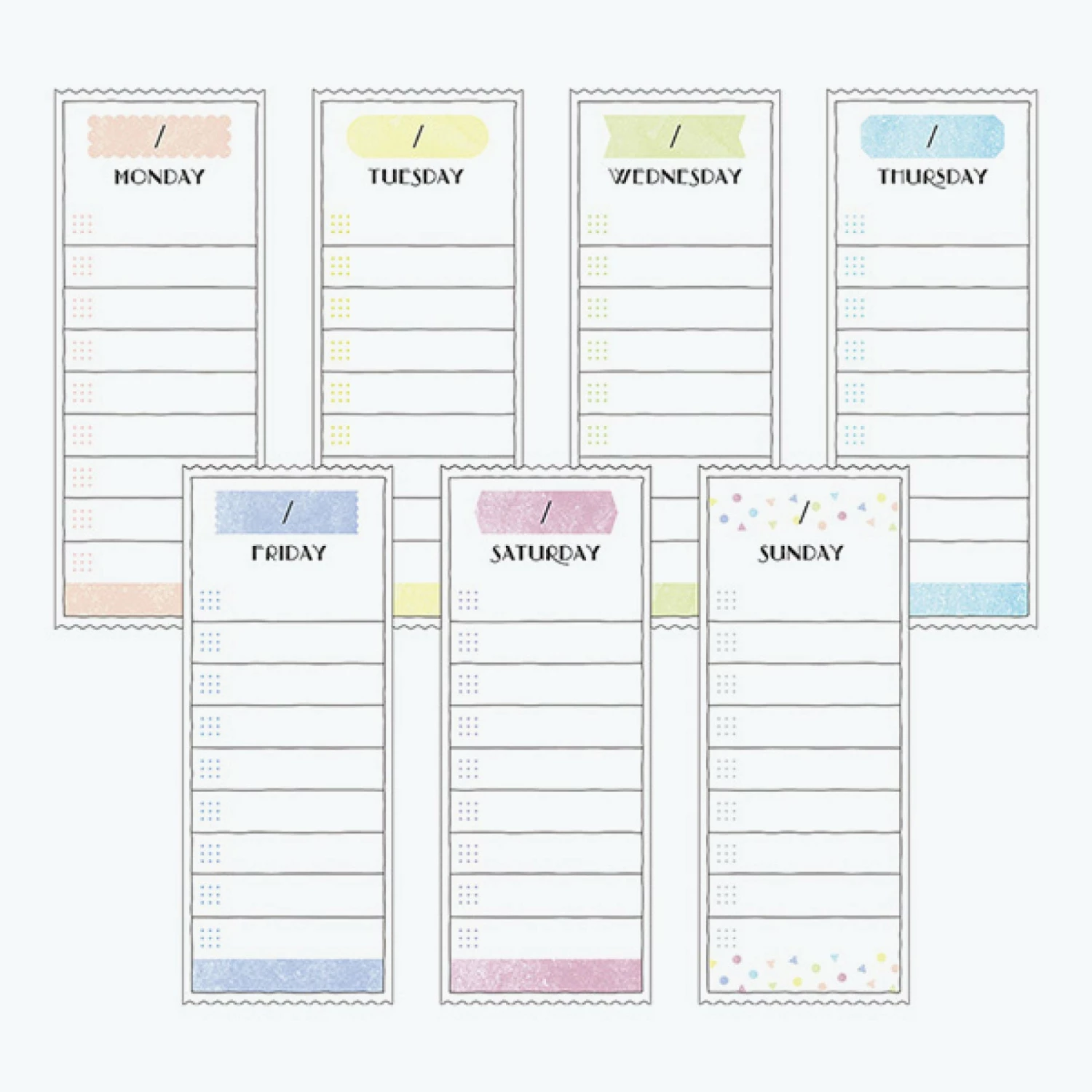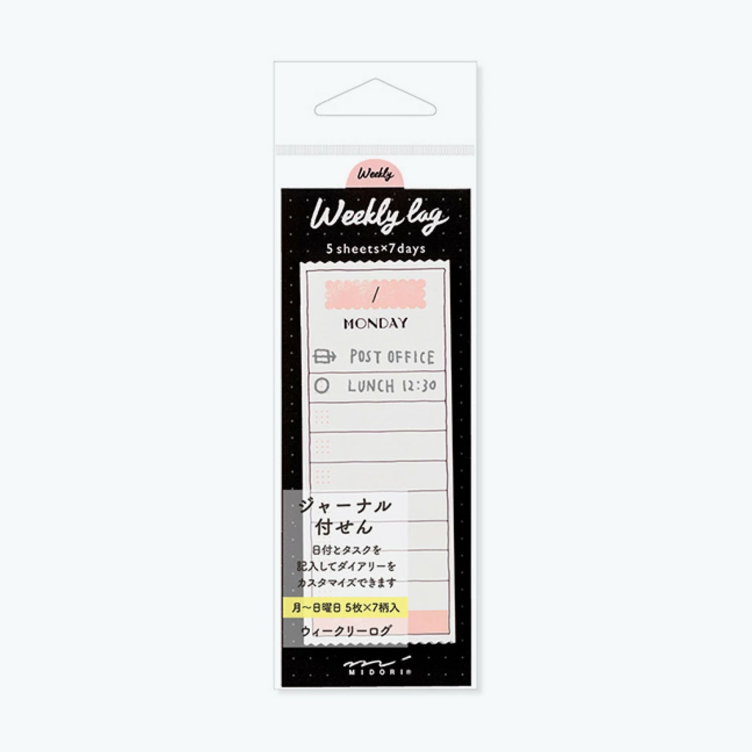 The MidoriΒ Weekly LogΒ stickersΒ are perfect forΒ keeping your journal organised, while adding a touch of colour and style.Β Each stickerΒ features 9 lines to write a daily to do list, with 9 dots on the left hand side of each line that can be used to make your own signifiers. There is alsoΒ space at the top to add in the date.Β