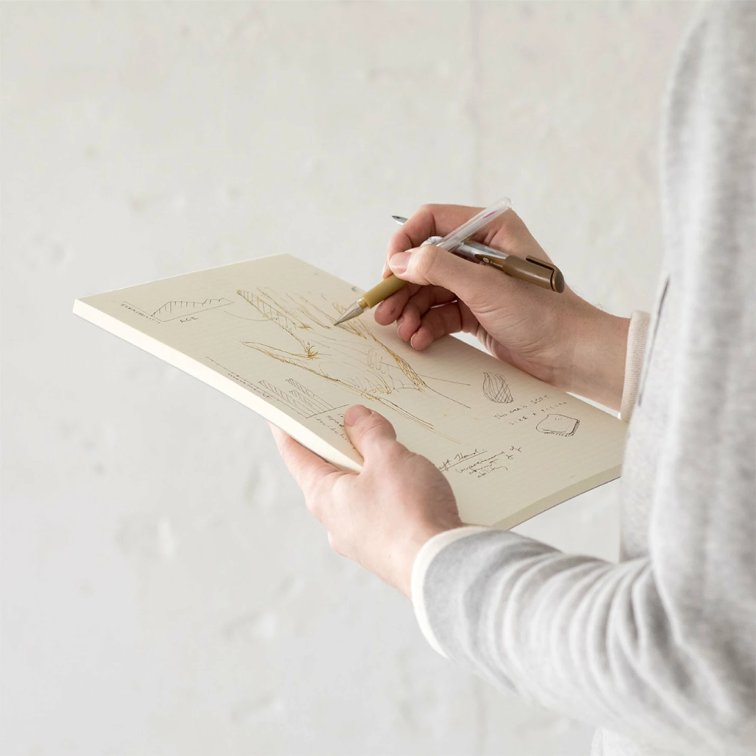 The Midori A4 Notepad contains 90 sheets of cream,Β gridΒ MD Paper and is backed with sturdy card for durability. The MD Paper is smooth and resistant to feathering and show through, making it ideal for all writing instruments including fountain pens.Β
