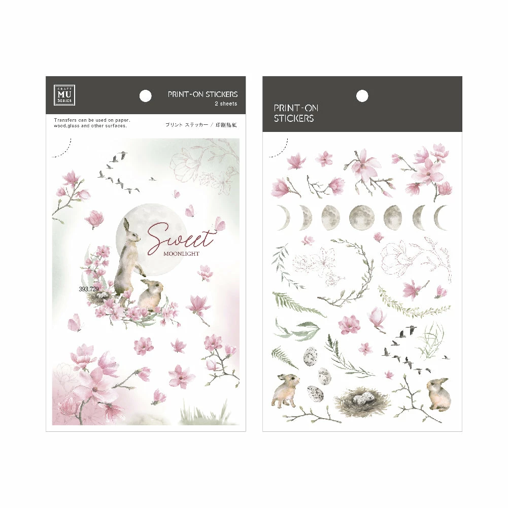 Unlike other sticker, the Print On StickerΒ do not have a sticky back and are applied by applying pressure to the sticker with aΒ wooden transfer stickΒ (eg. MU Print On Wooden Stick). The stickersΒ appear printed on the surface vs. applied. They can be applied on paper, wood, glass, etc.