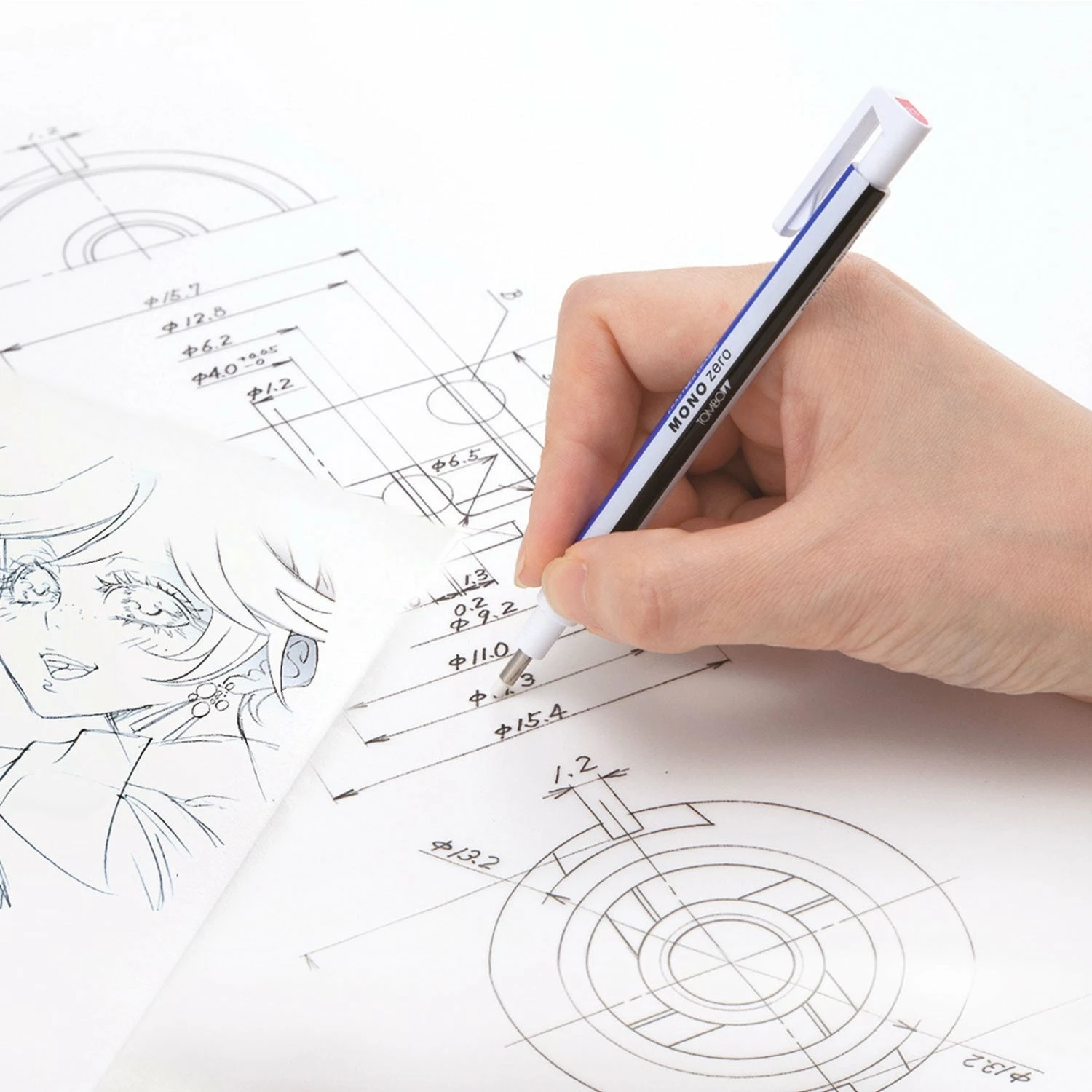 TheΒ blueΒ TombowΒ Mono Zero Metal Type is a high-precision eraser pen for pinpoint erasing.Β The ultrafine 2.5mm x 5mmΒ rectangle eraserΒ allows for correcting a single letter or detailed drawing, while theΒ seamless design and alumite coating are used to add lightness, strength and beauty.