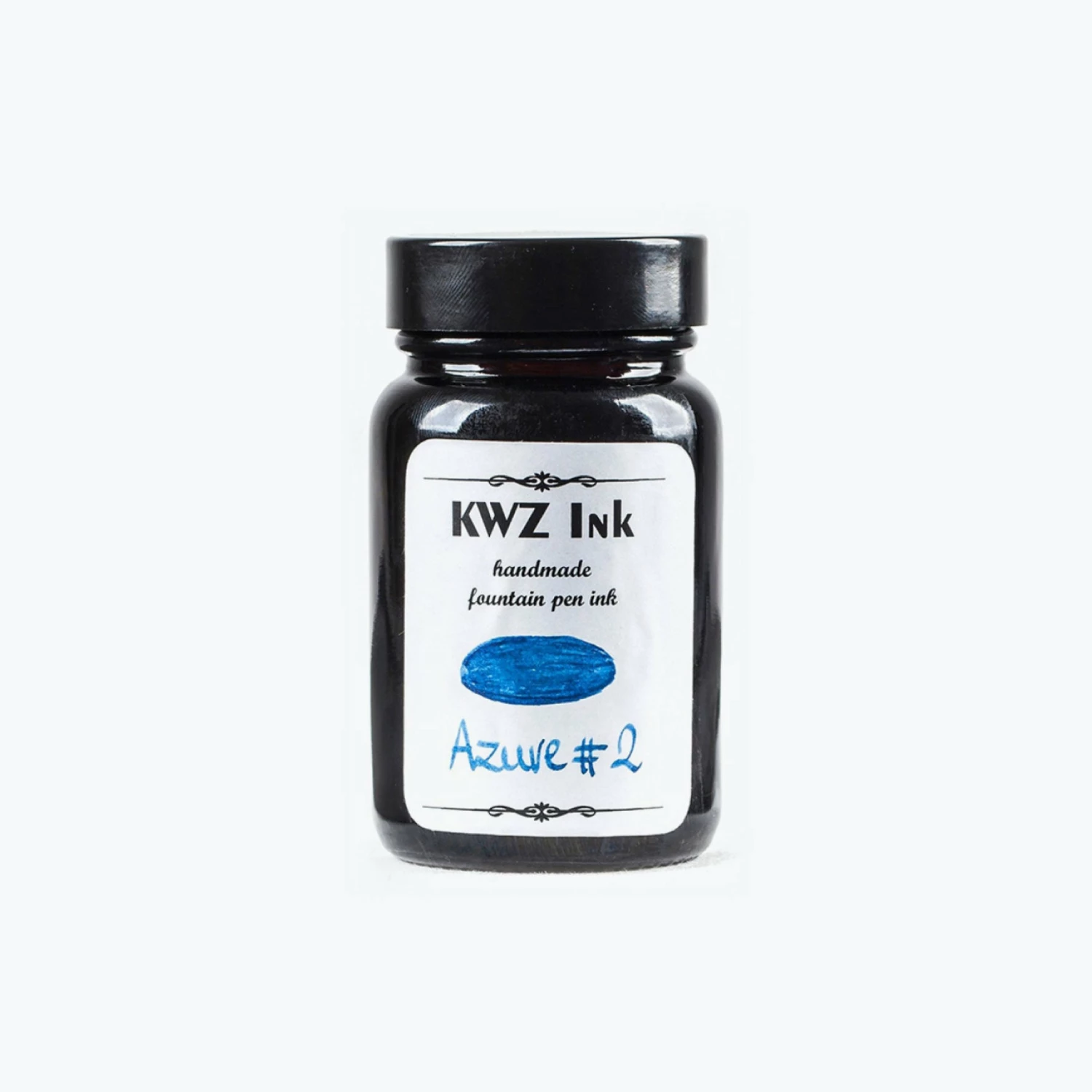 TheΒ Azure #2Β handmade bottle contains 60mL,Β while theΒ hand-written label isΒ a defining feature of KWZ.Β They are a remarkable find for those who appreciate colour intensity andΒ wet flowingΒ fountain pen inks forΒ a great writing experience.