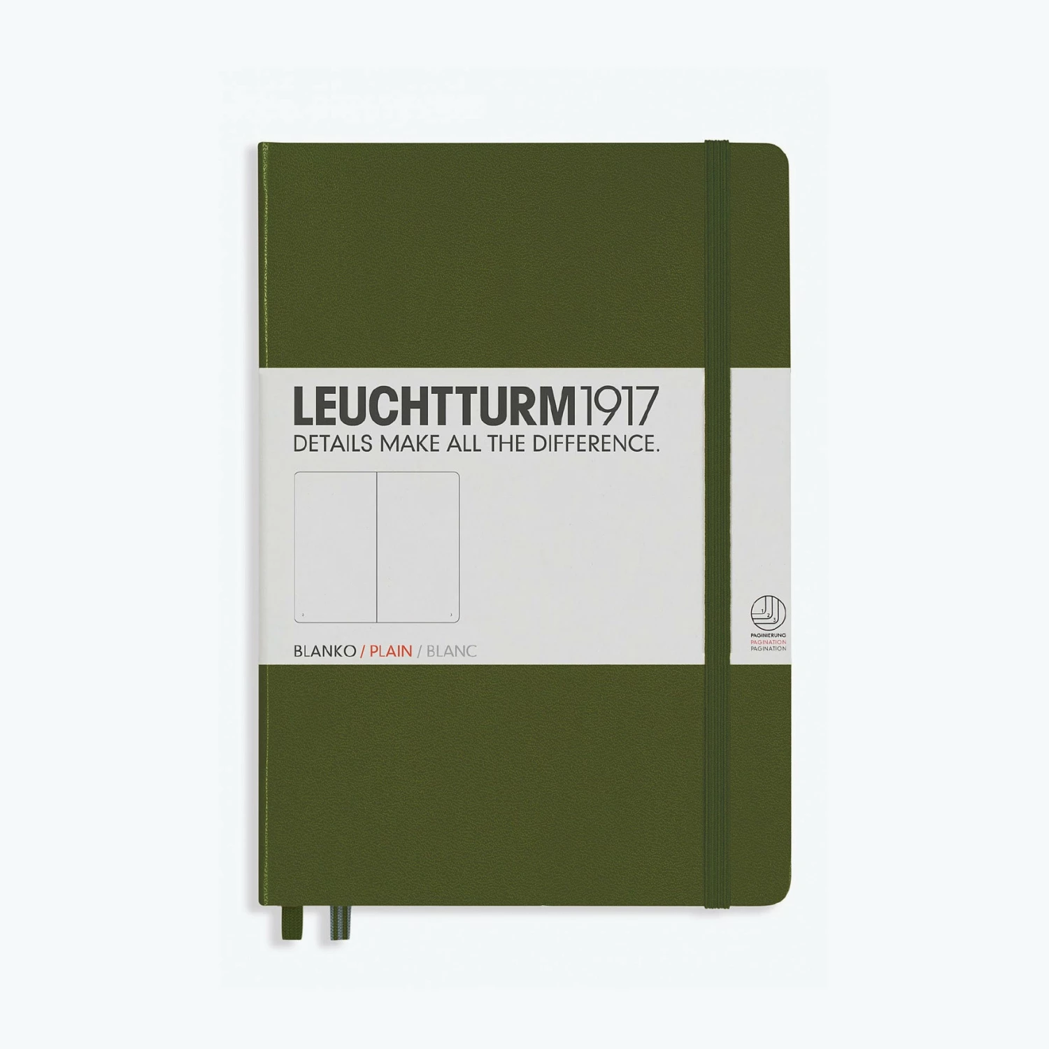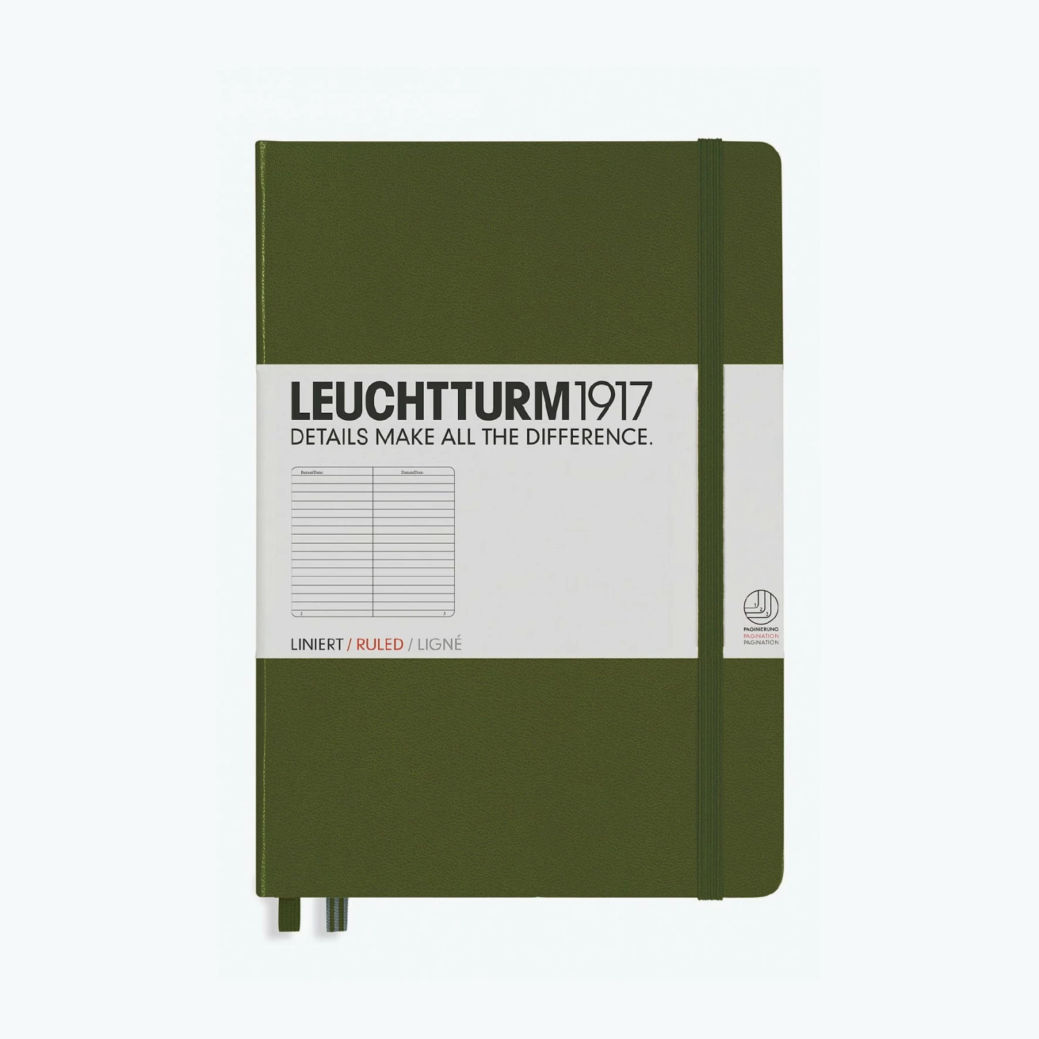 TheΒ armyΒ Leuchtturm1917Β A5Β is a simple yet sophisticated notebook, making it an ideal companion for all walks of life. Leuchtturm1917 notebooks are designed very carefully down to the last detail. The pages are numbered and each page has space at the top for the date, while a blank table of content makes it easy to organise notes. There are several perforated pages and a gusseted pocket at the back of the notebook, as well as a set of self-adhesive stickers for labelling and archiving.