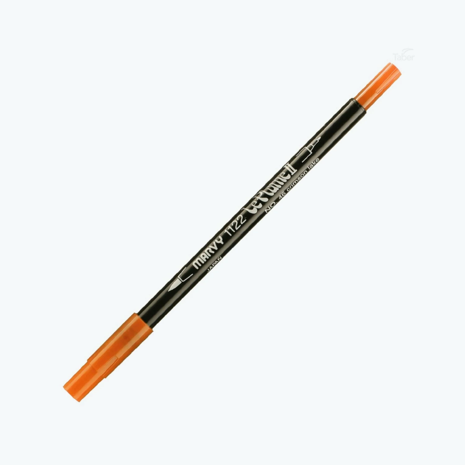 The Orange #7 Marvy Uchida Le Plume II is a dual end, water-based marker with a smooth brush on one end and an extra fine tip on the other. The ink is acid-free and non-toxic. The ink is also water based and blendable, making it ideal for a variety of uses including writing, journalling, rubber stamping, card making and drawing.