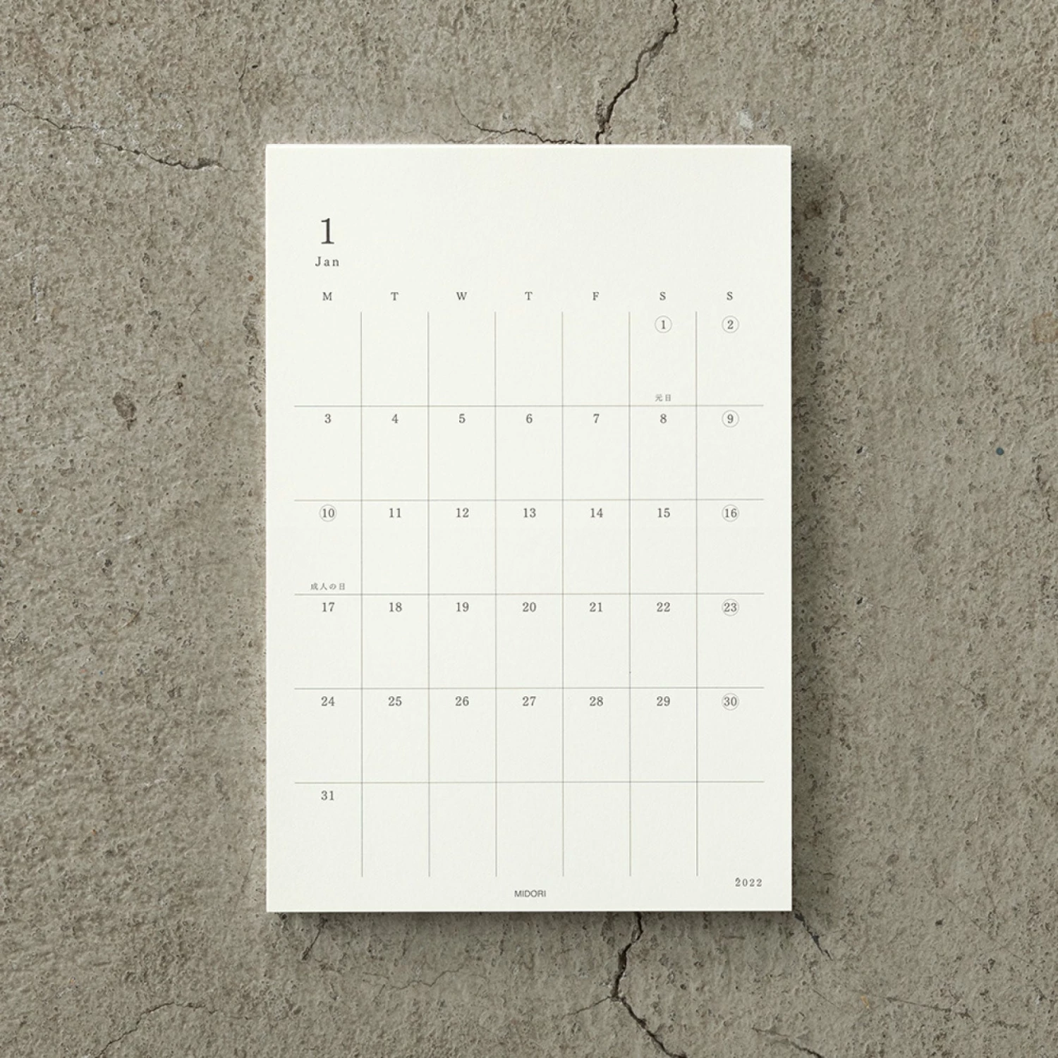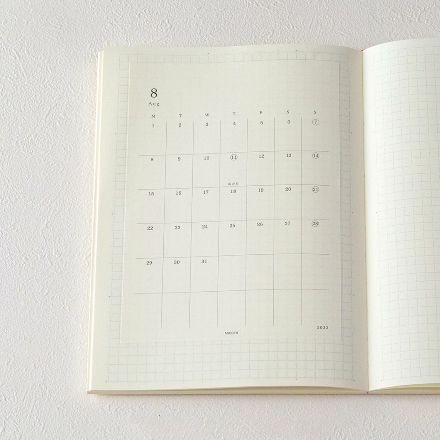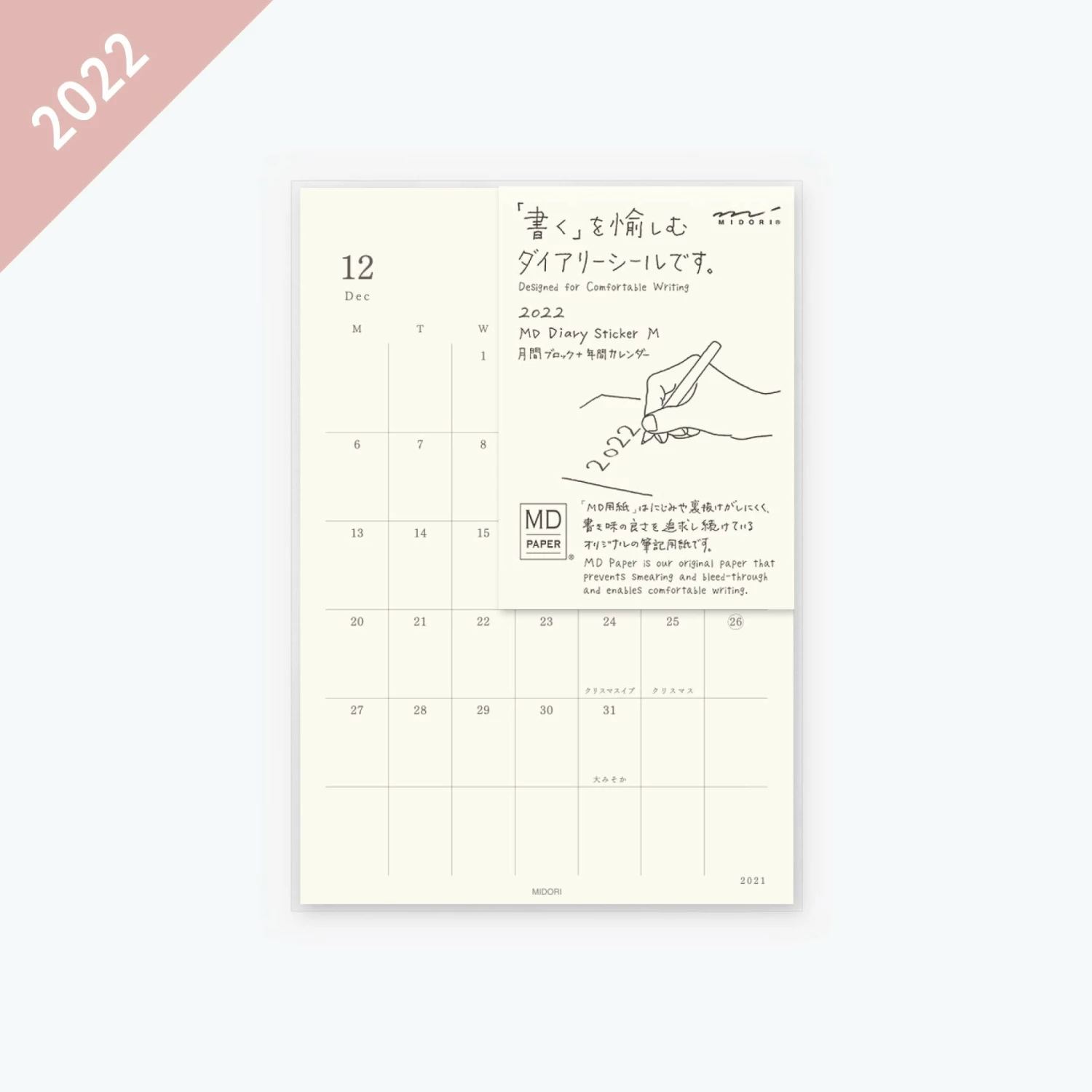 The Midori 2022 Diary Sticker [M] allows you to stay organised using your existing notebook. For example, you can attach a month-long calendar sticker to the left page of your MD Notebook, then use the right page to keep a daily journal and repeat for the rest of the months.