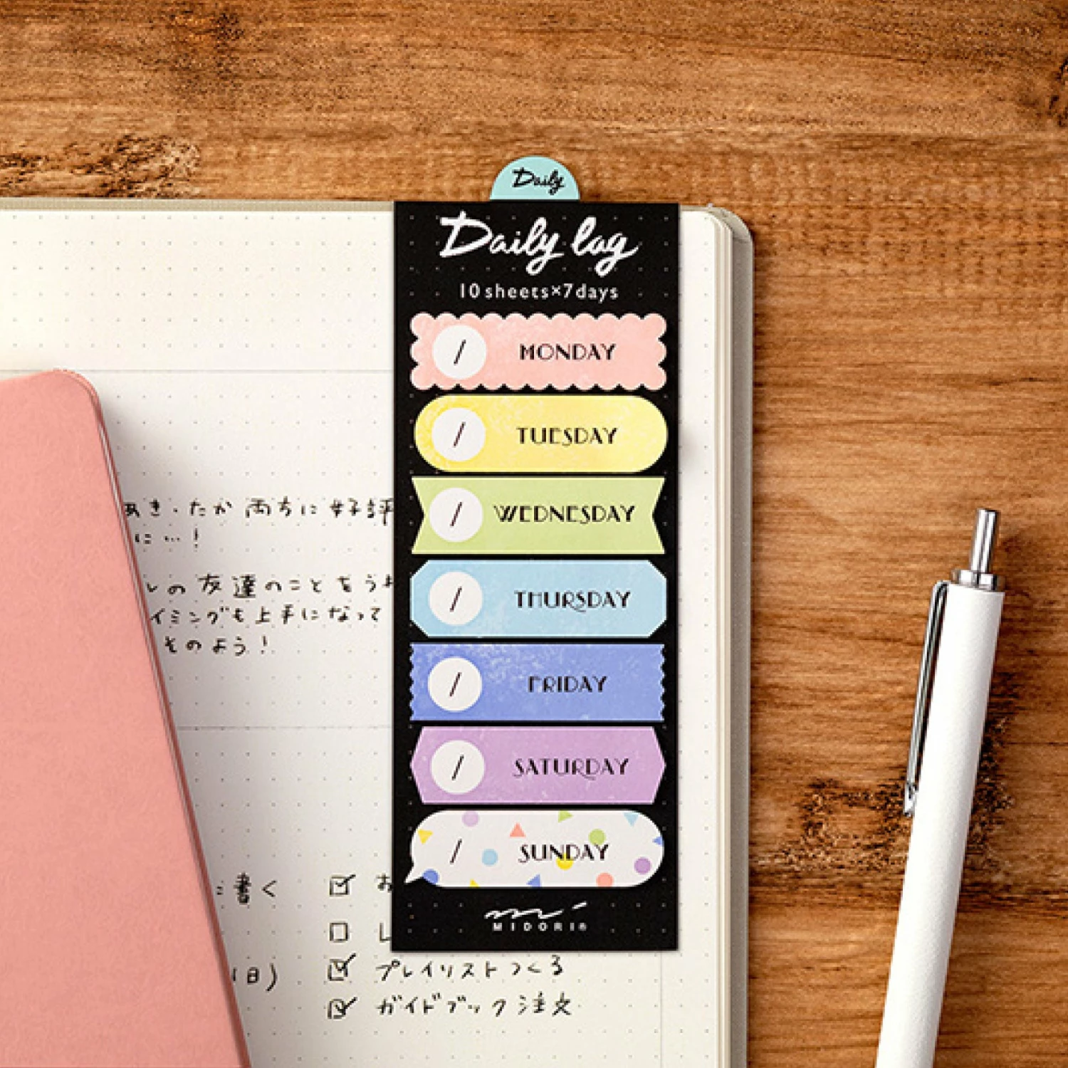The Midori Daily Log stickers are perfect for keeping your journal organised, while adding a touch of colour and style. They can be used in a notebook, journal or planner to highlight important dates or notes.