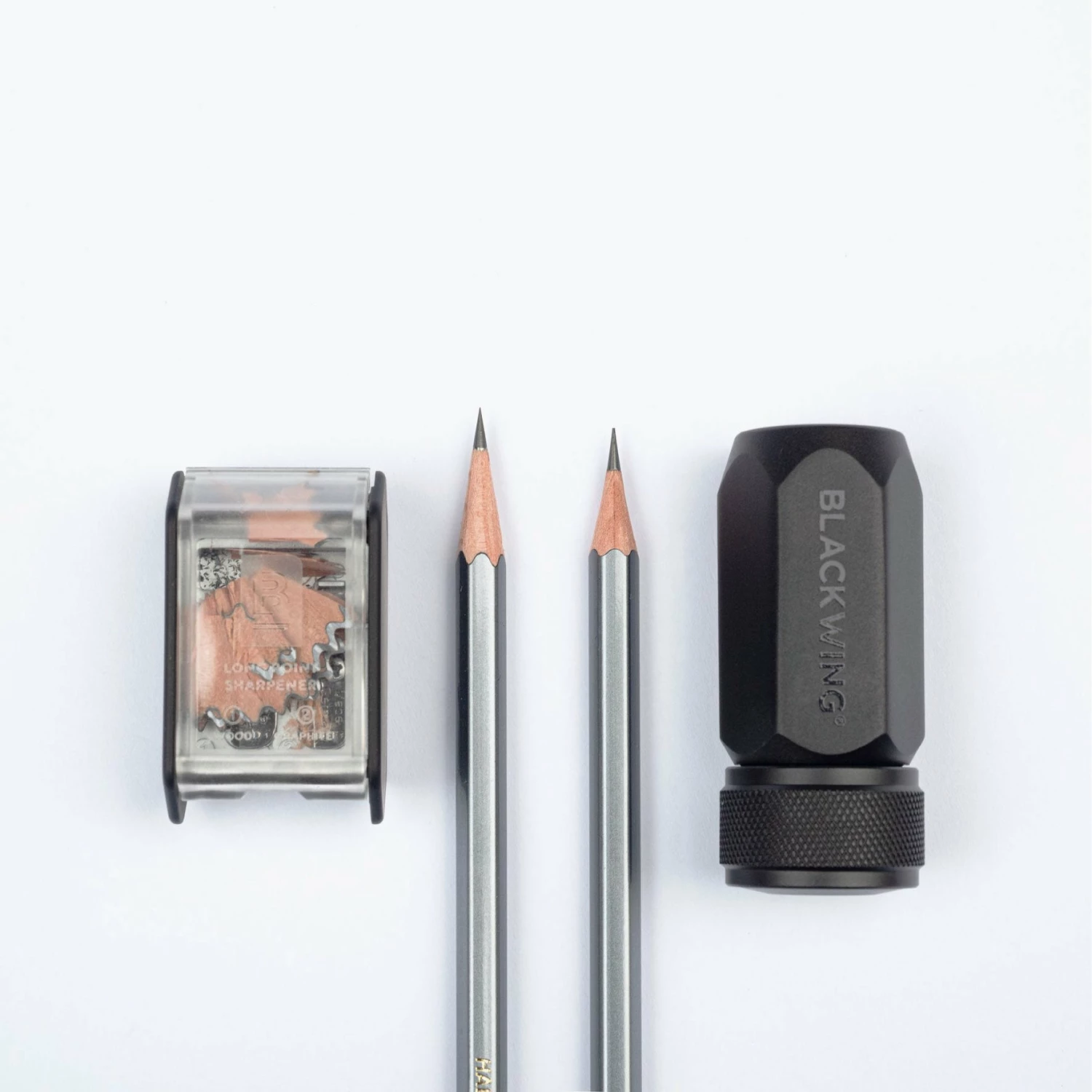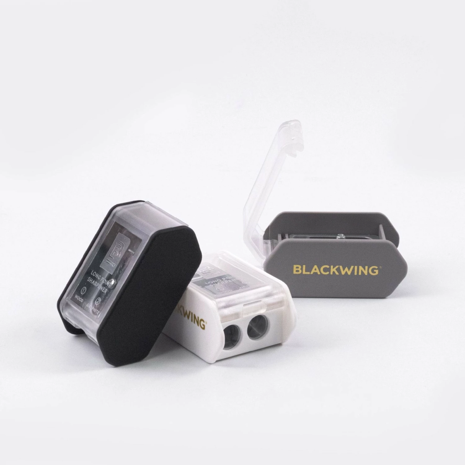 The upgradedย Blackwing Long Pointย Two-Step Sharpener featuresย theย reliable two-step sharpening systemย inside of a sleek new package. Even though this newย sharpener feels much smaller inย theย hand, it holds the same amount of shavings as its predecessor thanks to optimizations to the shaving compartment. The lid stays shut when you useย it.ย ย