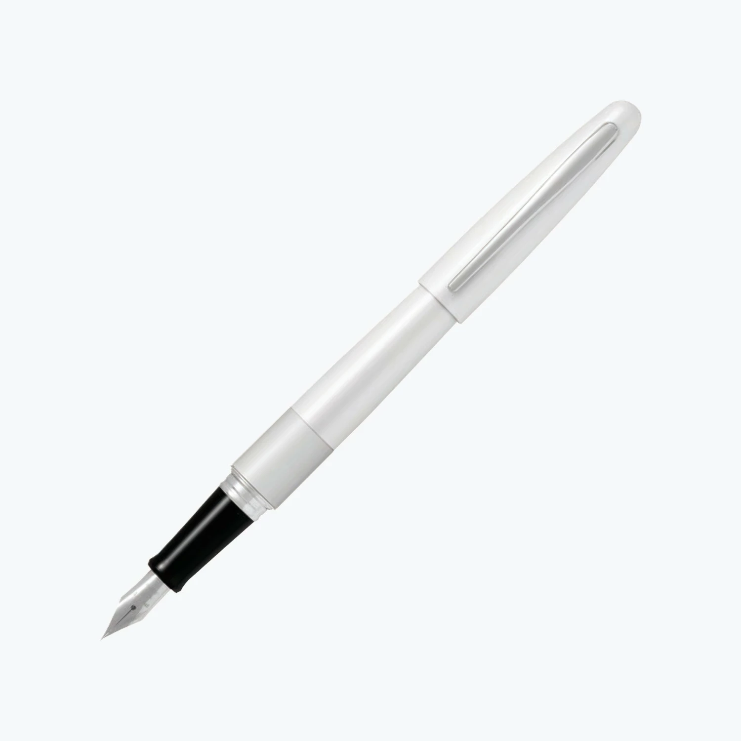 TheΒ whiteΒ PilotΒ CocoonΒ isΒ aΒ sleek shaped fountain penΒ with a quality steel nib that is known for its smoothness,Β making it perfect for everyday use or beginners.Β The metal body features a stylish matte finish over a brass barrel with chrome accents. The band near the cap has a glossiness that is reserved and creates a subtle distinction from the rest of the body.