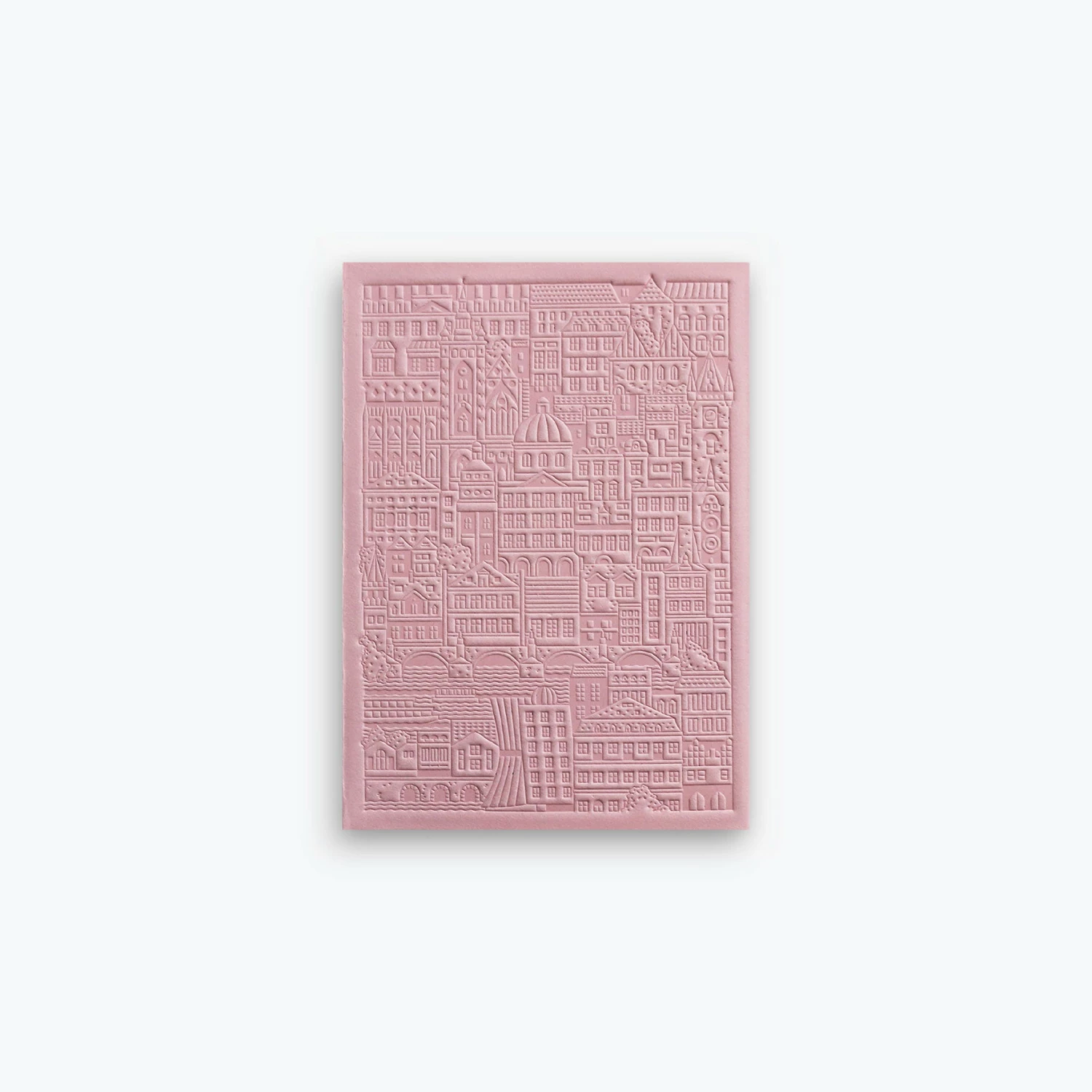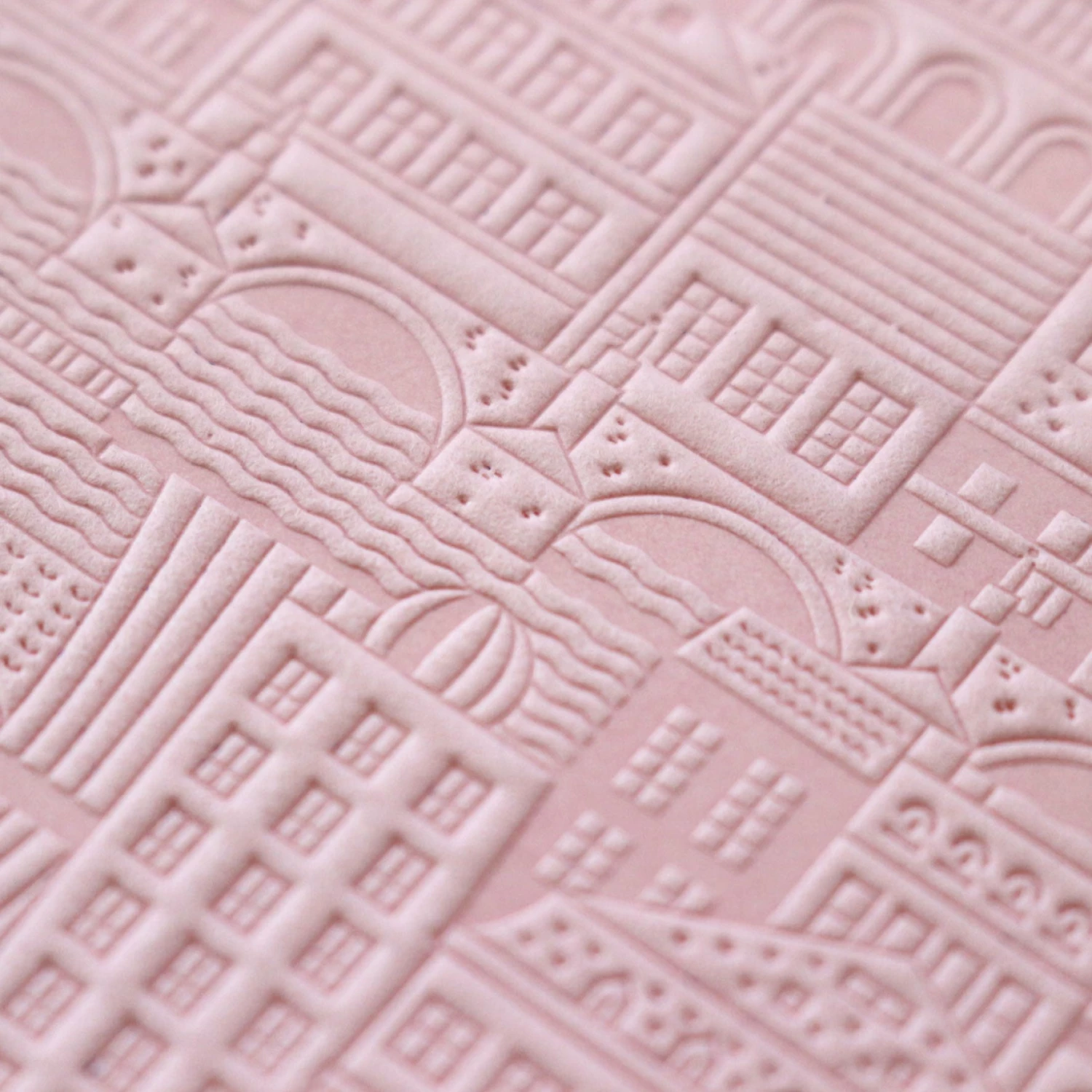 Prague, the city of a thousand spires, is intricately inscribed into this high-quality notebook. The pink cover features iconic landmarks including Charles Bridge, Dancing House, Astronomical Clock Tower and St. George’s Basilica – how many can you find?