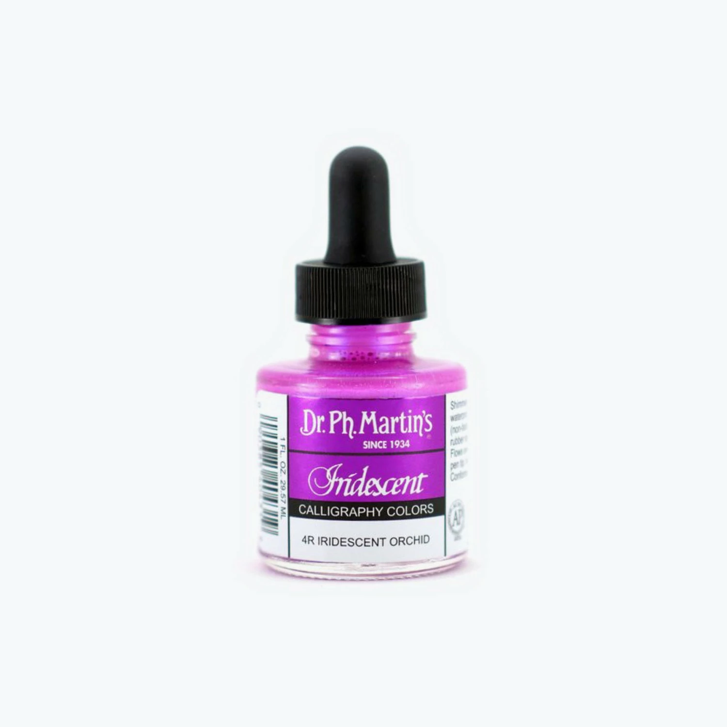 Dr. Ph. Martin’s Iridescent Calligraphy Colours are shimmering, highly reflective colours that are lightfast, waterproof, archival, and permanent. Made from the finest ground pigments, the unmatched colour intensity of Dr. Ph. Martin’s Iridescent Calligraphy Colours gives you the ability to cover dark surfaces with a dynamic range of metallic colour. Great for use on paper, wood, board, metal, and some plastics. Dr. Ph. Martin’s Iridescent Calligraphy Colours dries smooth and even every time. No start and stop marks. Great for use with pens (both calligraphy and dip pens), airbrushes, and brushes. Designed specially for calligraphy, to accent watercolour work, or anywhere where you need to add a magical shine and shimmer that only pigment-based iridescent colour can provide.