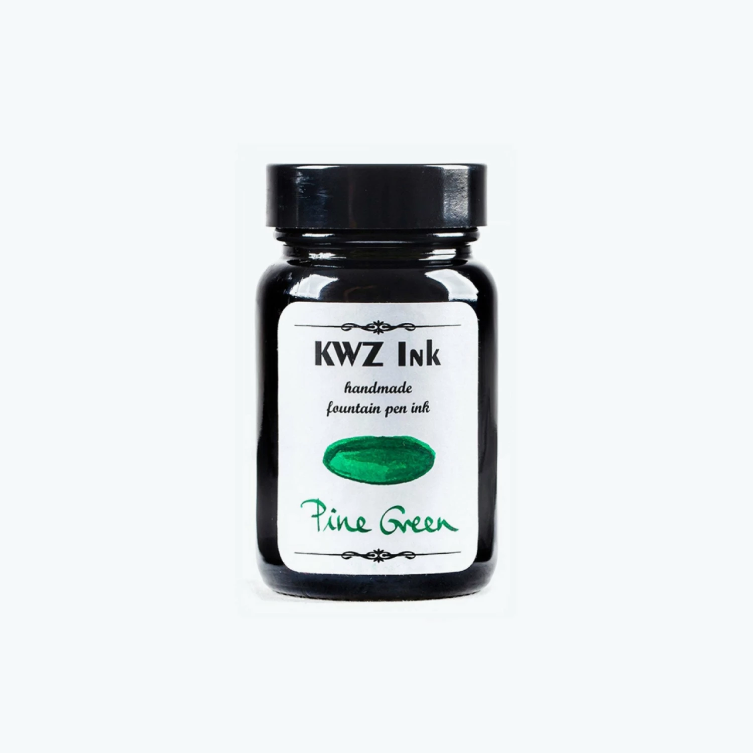 The Pine GreenΒ handmade bottle contains 60mL,Β while theΒ hand-written label isΒ a defining feature of KWZ.Β They are a remarkable find for those who appreciate colour intensity andΒ wet flowingΒ fountain pen inks forΒ a great writing experience.