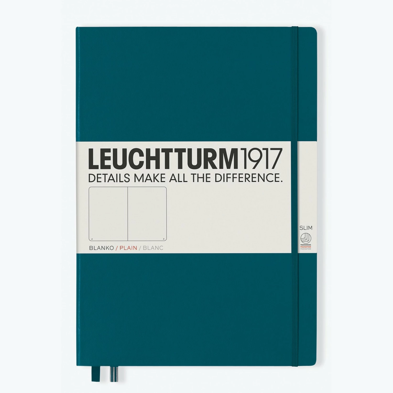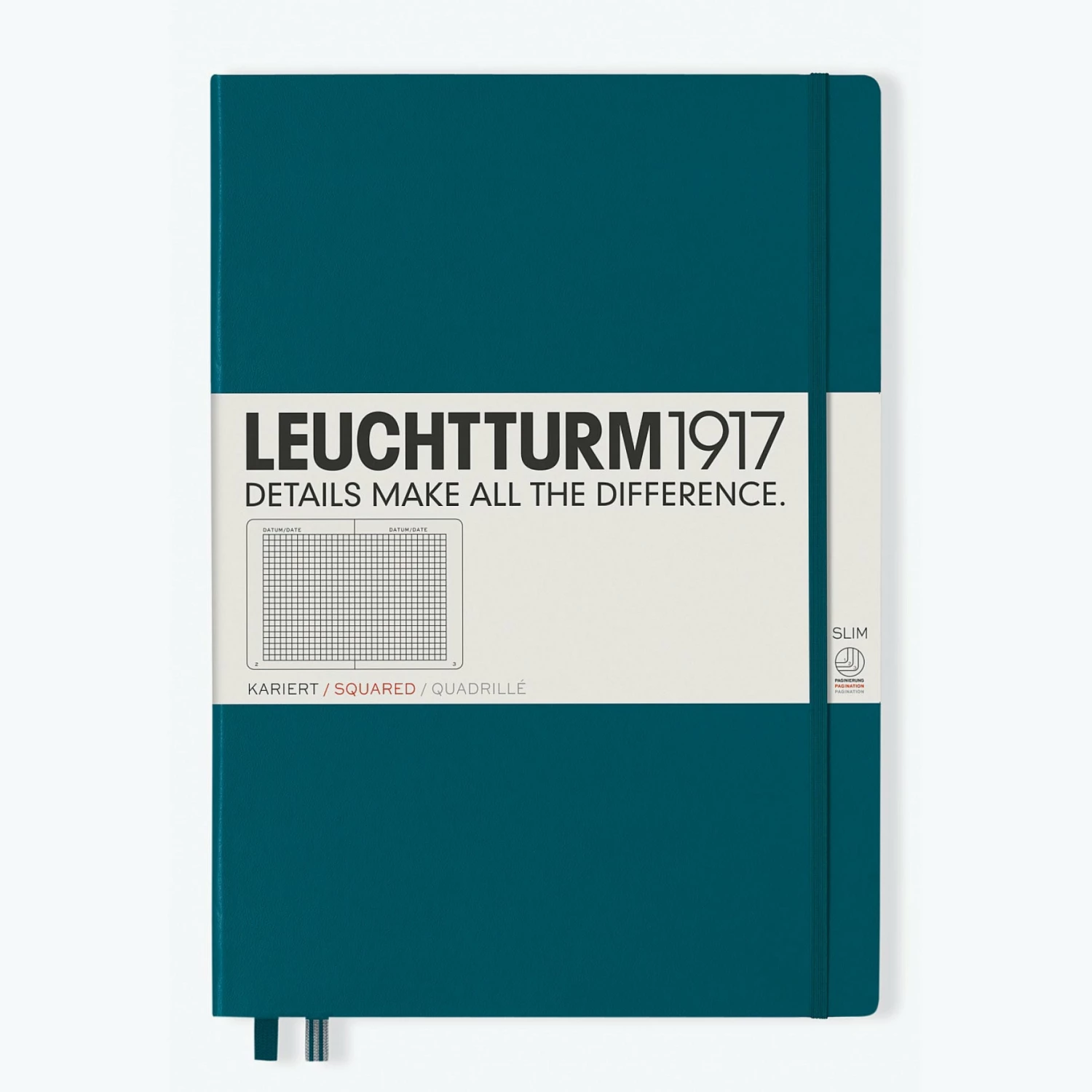 Theย pacific greenย Leuchtturm1917ย A4+ is a simple yet sophisticated notebook, making it an ideal companion for all walks of life. Leuchtturm1917 notebooks are designed very carefully down to the last detail. The pages are numbered and each page has space at the top for the date, while a blank table of content makes it easy to organise notes. There are several perforated pages and a gusseted pocket at the back of the notebook, as well as a set of self-adhesive stickers for labelling and archiving.