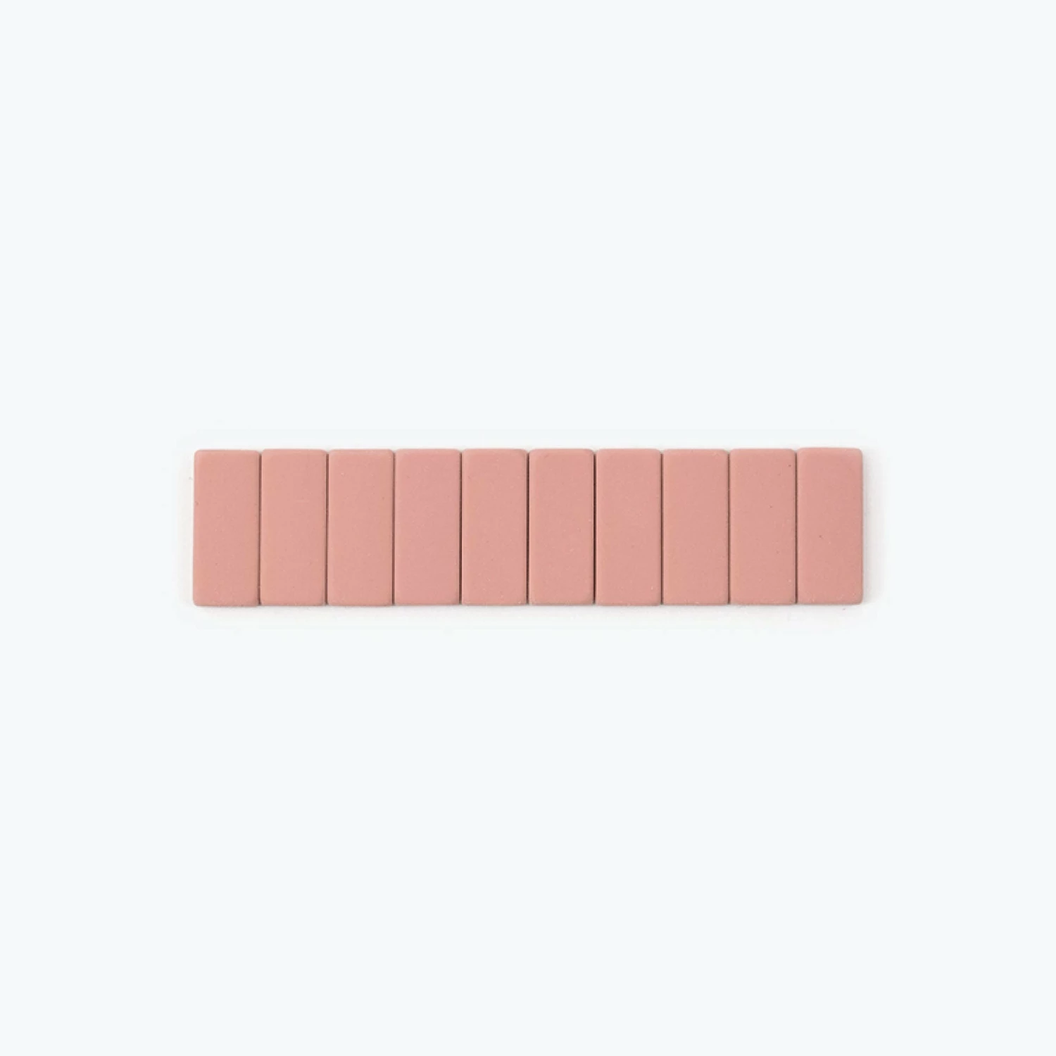 The Blackwing pink replacement eraser comes in a pack of 10 and can be used for any Blackwing pencil. You can also create a custom looking pencil by mixing and matching different coloured erasers with different pencils.