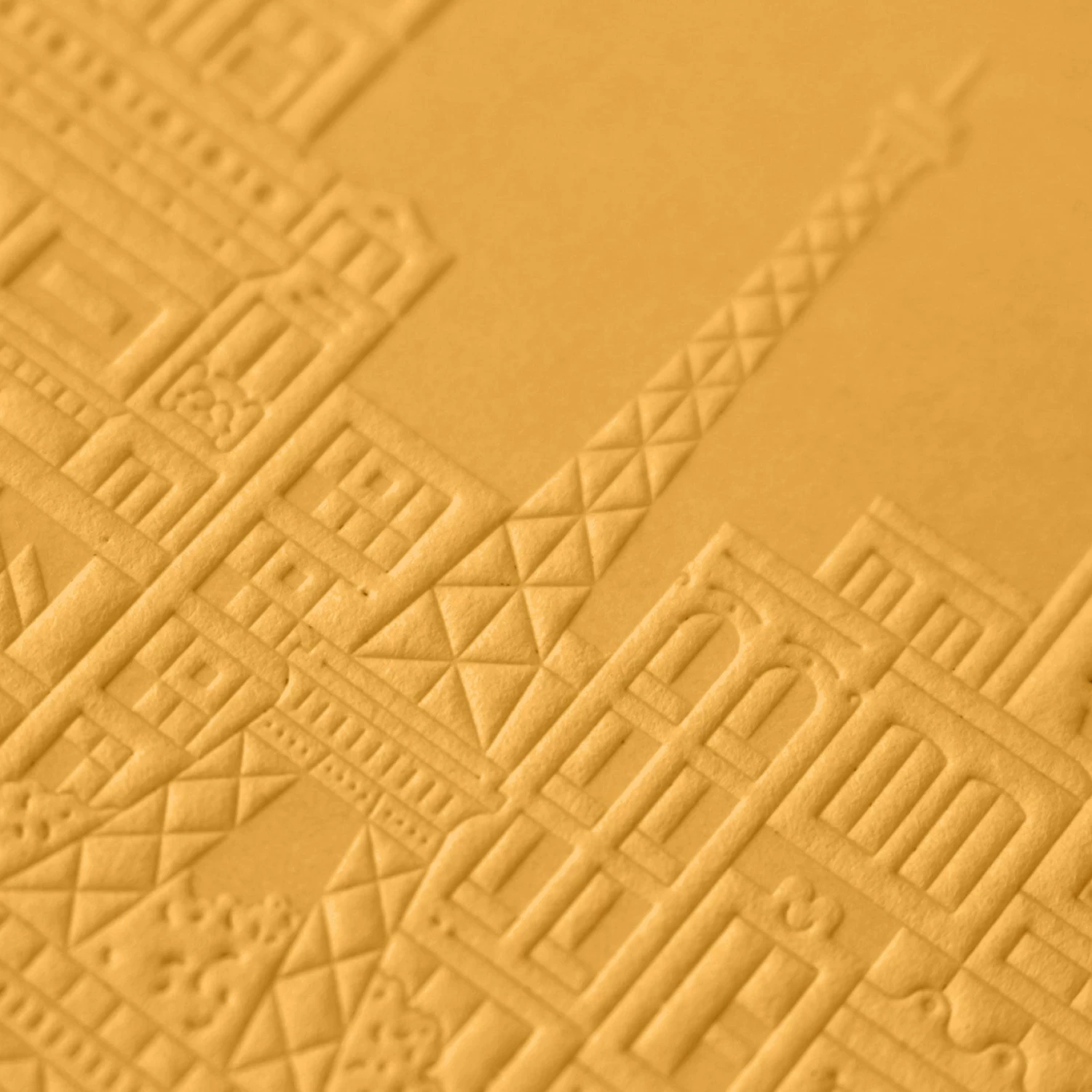 Celebrate the cityscape of Paris with this intricately designed and beautifully made The City Works notebook. The hand-pressed cover is lay-flat bound in the Netherlands, ensuring the notebook remains perfectly flat when open. The cover paper is from Colorplan, England, while the 144 blank pages on the inside are from Munken, Sweden.