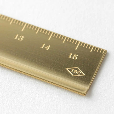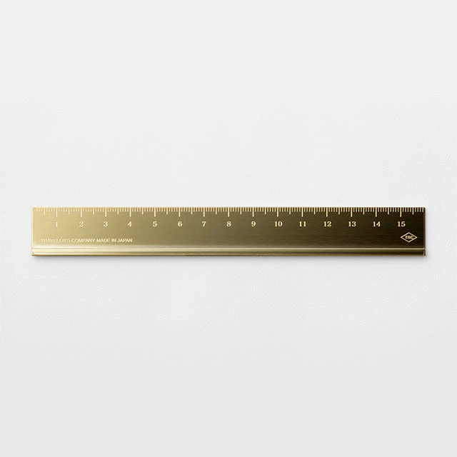 Theย Traveler’s Companyย 15cm solid brass ruleย isย raised on one sideย to make drawing lines easy. Initially the ruler is gold in colour, butย over time the colourย patinas toย transform intoย an antique finish.ย Like all Traveler’s brass accessories, the ruler is made to last forever and fits inside the Traveler’s Company brass pencil case.ย
