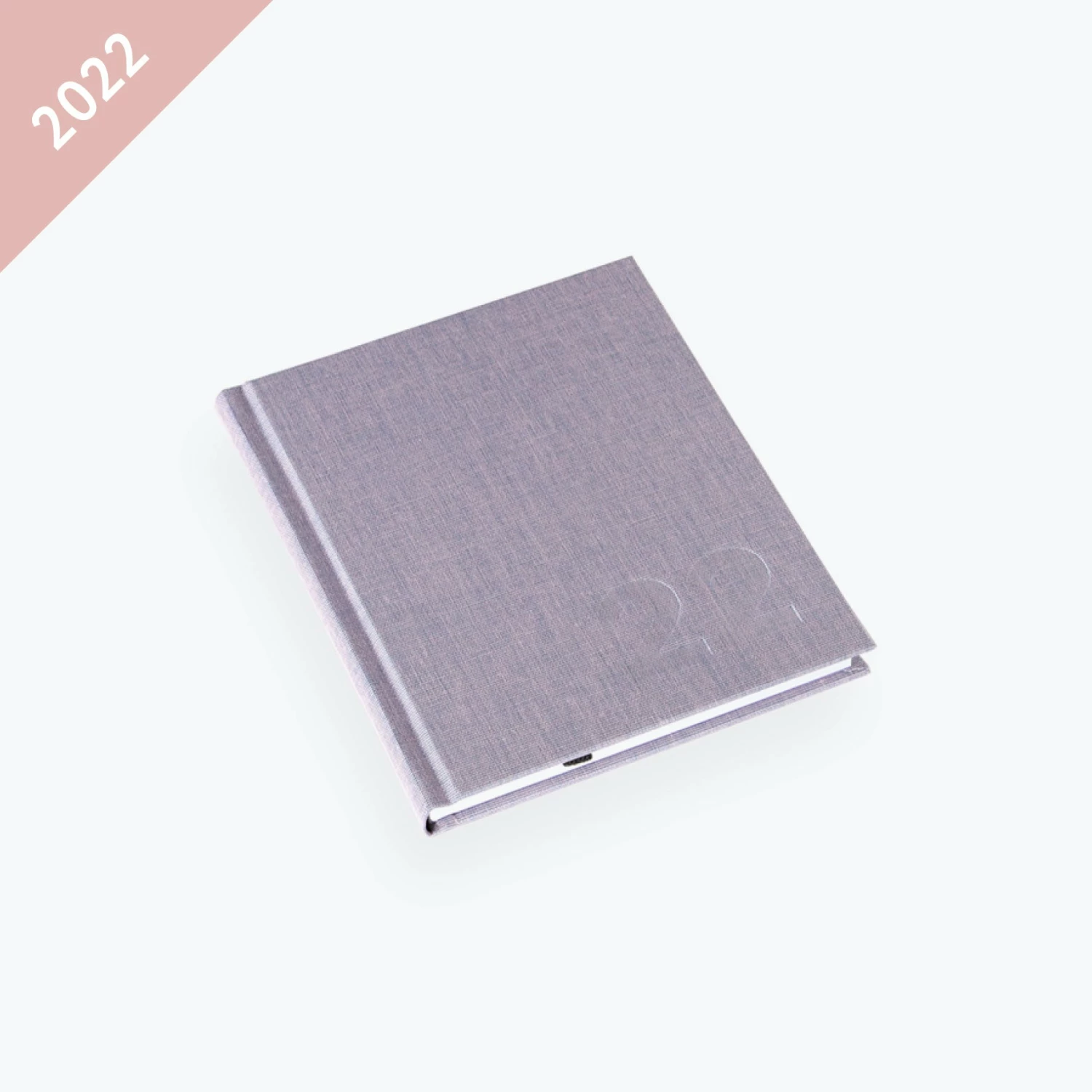 Get organised for 2022 with the lilac, cloth-boundΒ Bookbinders DesignΒ diary.Β TheΒ small sized, hard cover diary features a week per double page, as well as a monthly overview. The number 22 is blind debossed on the bottom right hand corner, while a black ribbon makes it easy to bookmark pages.Β