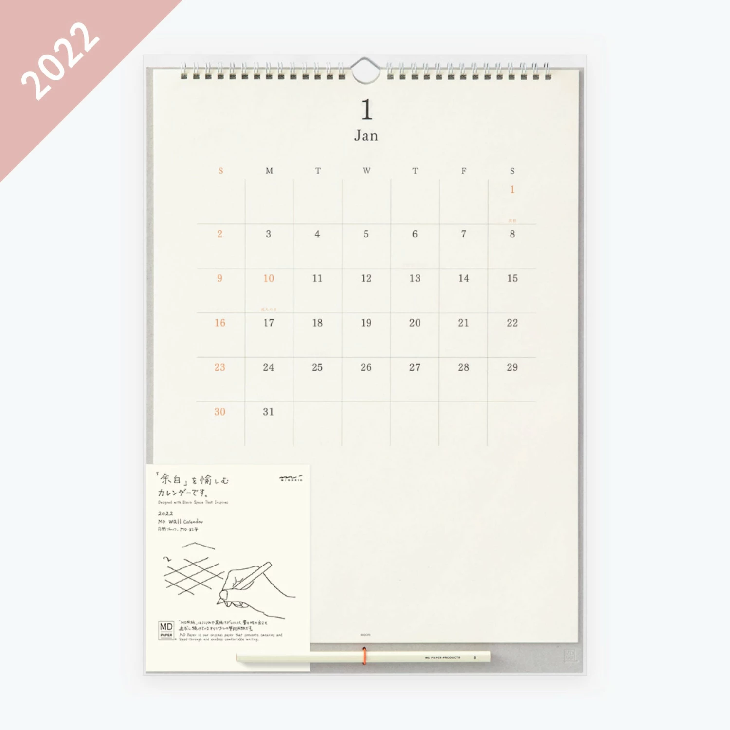 The Midori MD Wall 2022 Calendar is the latest addition to the MD Calendar series. It features 12 pages with one month per page (January to December), with the bottom 1/3 of the page being blank to allow plenty of space for notes.