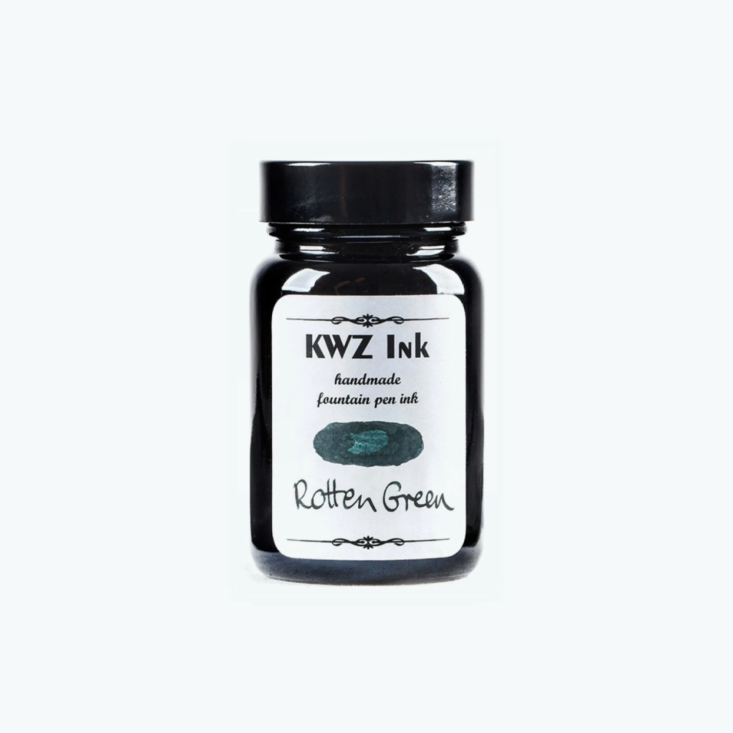 The Rotten GreenΒ handmade bottle contains 60mL,Β while theΒ hand-written label isΒ a defining feature of KWZ.Β They are a remarkable find for those who appreciate colour intensity andΒ wet flowingΒ fountain pen inks forΒ a great writing experience.