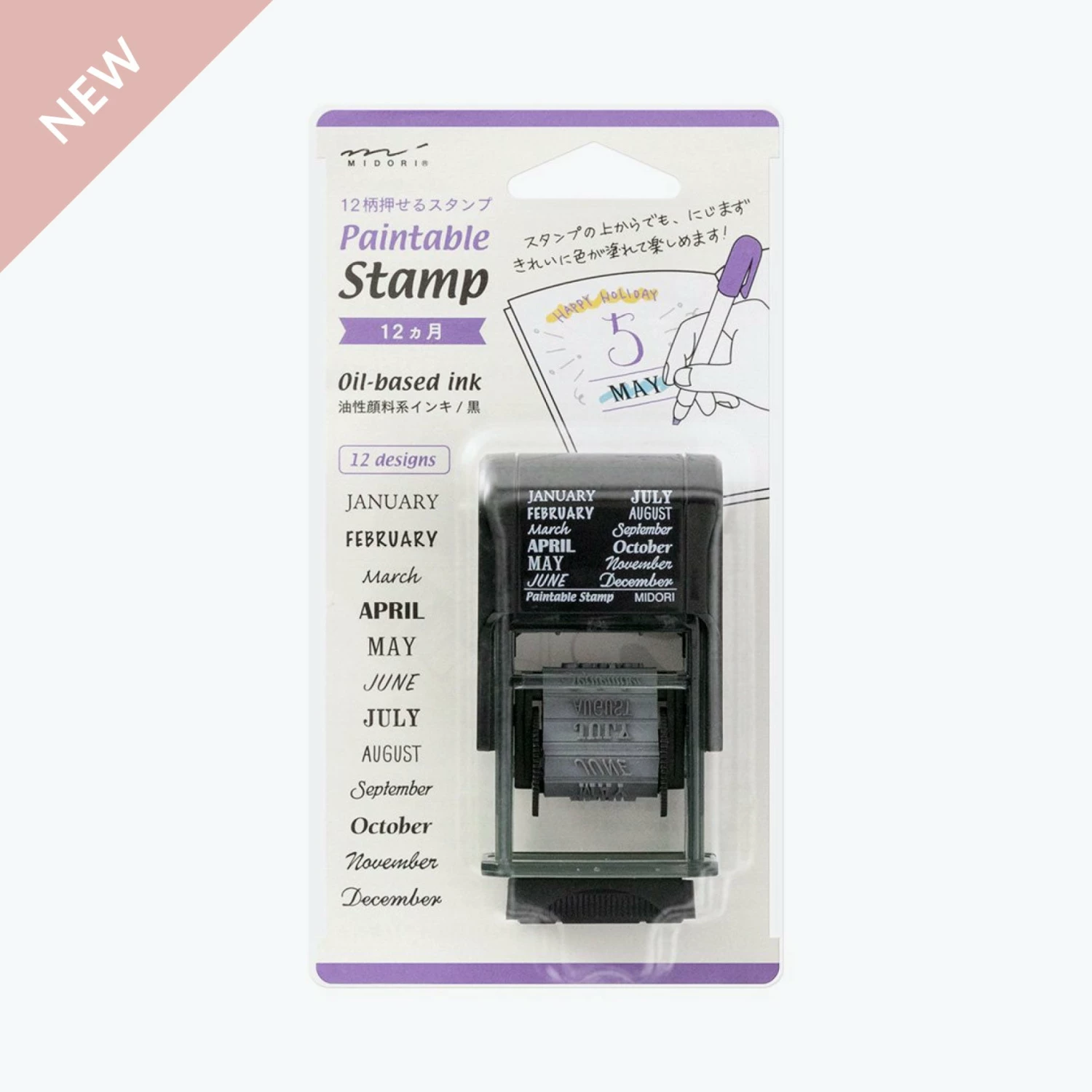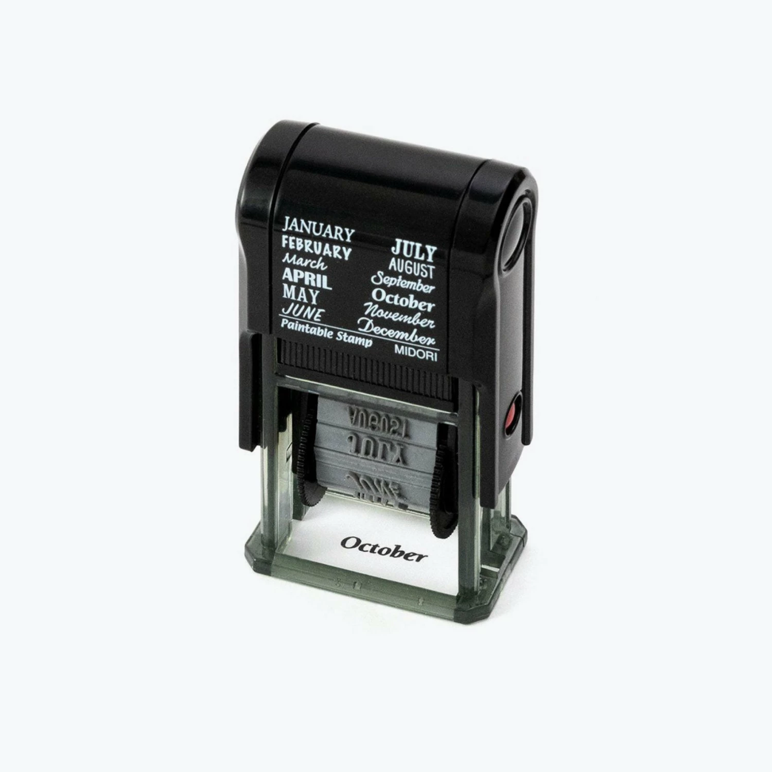 TheΒ MidoriΒ monthΒ rotating stamp features 12 designs includingΒ the months of the year in different fonts. To use, simply rotate to the desired design and press down on the page. The stamp can be used 2,000 times and when the ink runs out, it can beΒ topped upΒ using theΒ Midori ink refill.Β