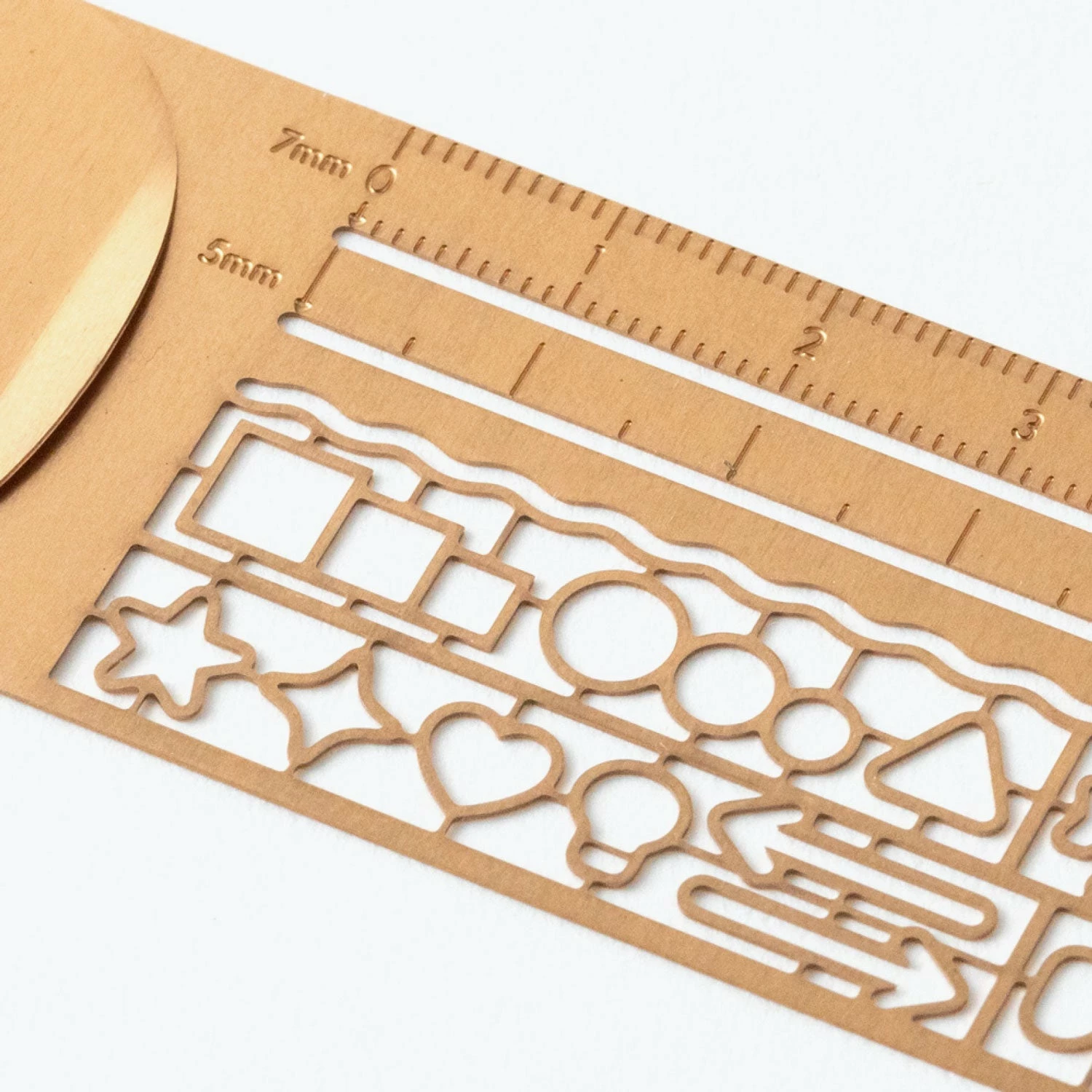 The copper MidoriΒ clip ruler is a multi-functional tool for writing and planning. It featuresΒ stencilsΒ of various motifs that can be outlined or coloured in. The slim design and clipΒ mean it can be used as a bookmark or attached to a notebook or planner.Β
