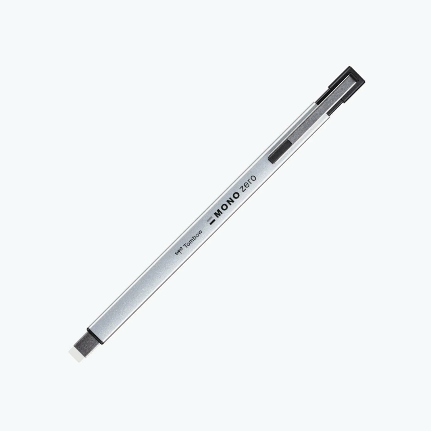 TheΒ silverΒ TombowΒ Mono Zero Metal Type is a high-precision eraser pen for pinpoint erasing.Β The ultrafine 2.5mm x 5mmΒ rectangle eraserΒ allows for correcting a single letter or detailed drawing, while theΒ seamless design and alumite coating are used to add lightness, strength and beauty.