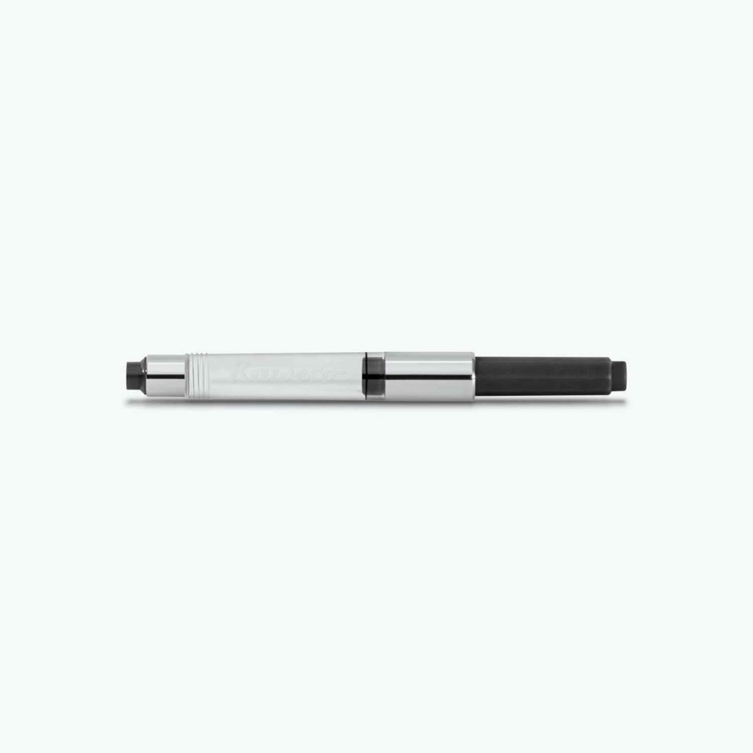 The blackΒ Kaweco piston converter is used to fill a fountain pen with bottled ink.Β It is made from plastic, has a capacity of 0.7mL and is an international fit so is compatible with any brand/pen that uses this standard including the Kaweco Perkeo, Student, Special and Supra.Β