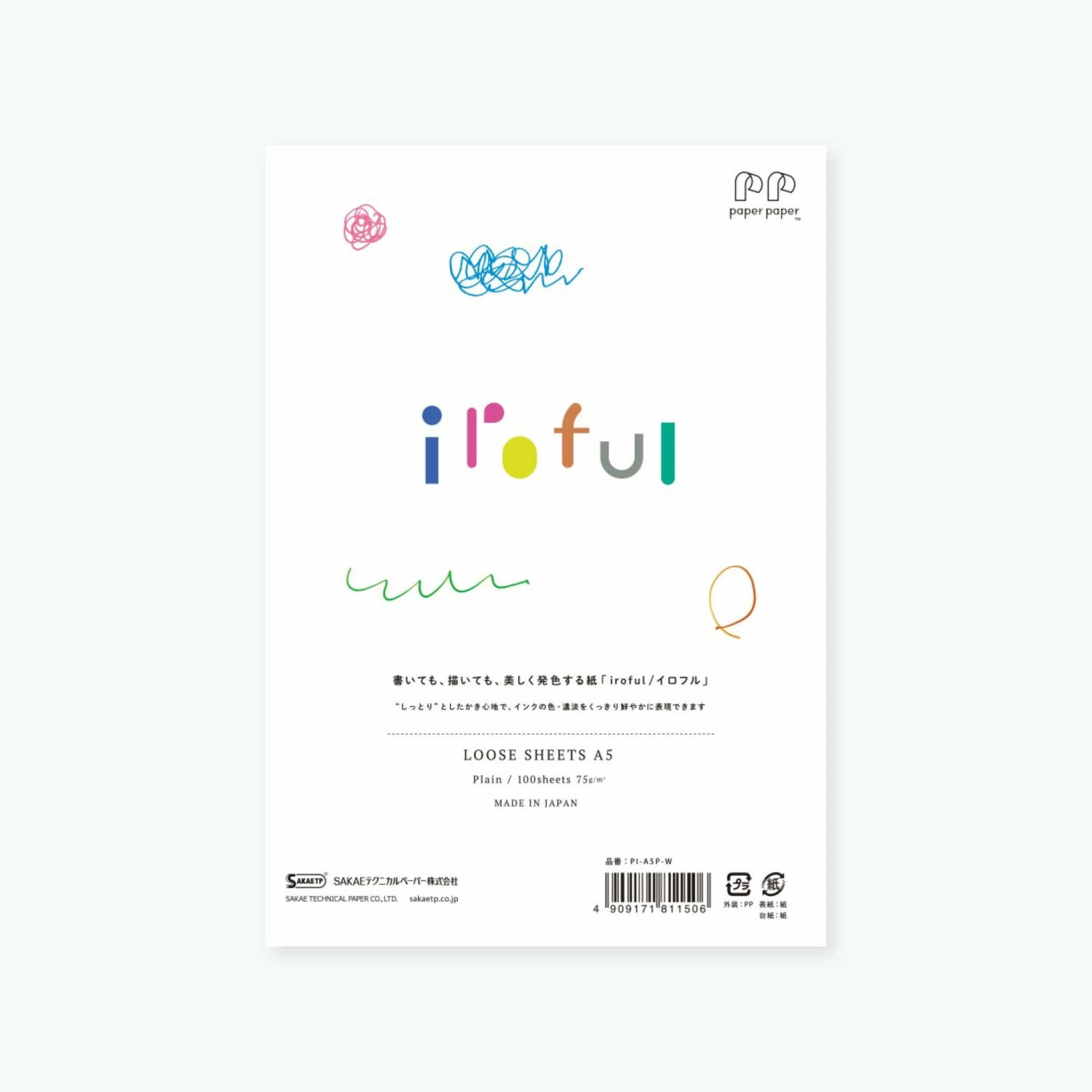 Pack of 100 loose sheets ofΒ white 75gsm fountain pen friendlyΒ Sakae TP IrofulΒ paper. The sheets are resistant to bleed-through and feathering, can handle a variety of inks, and are acid-free.Β