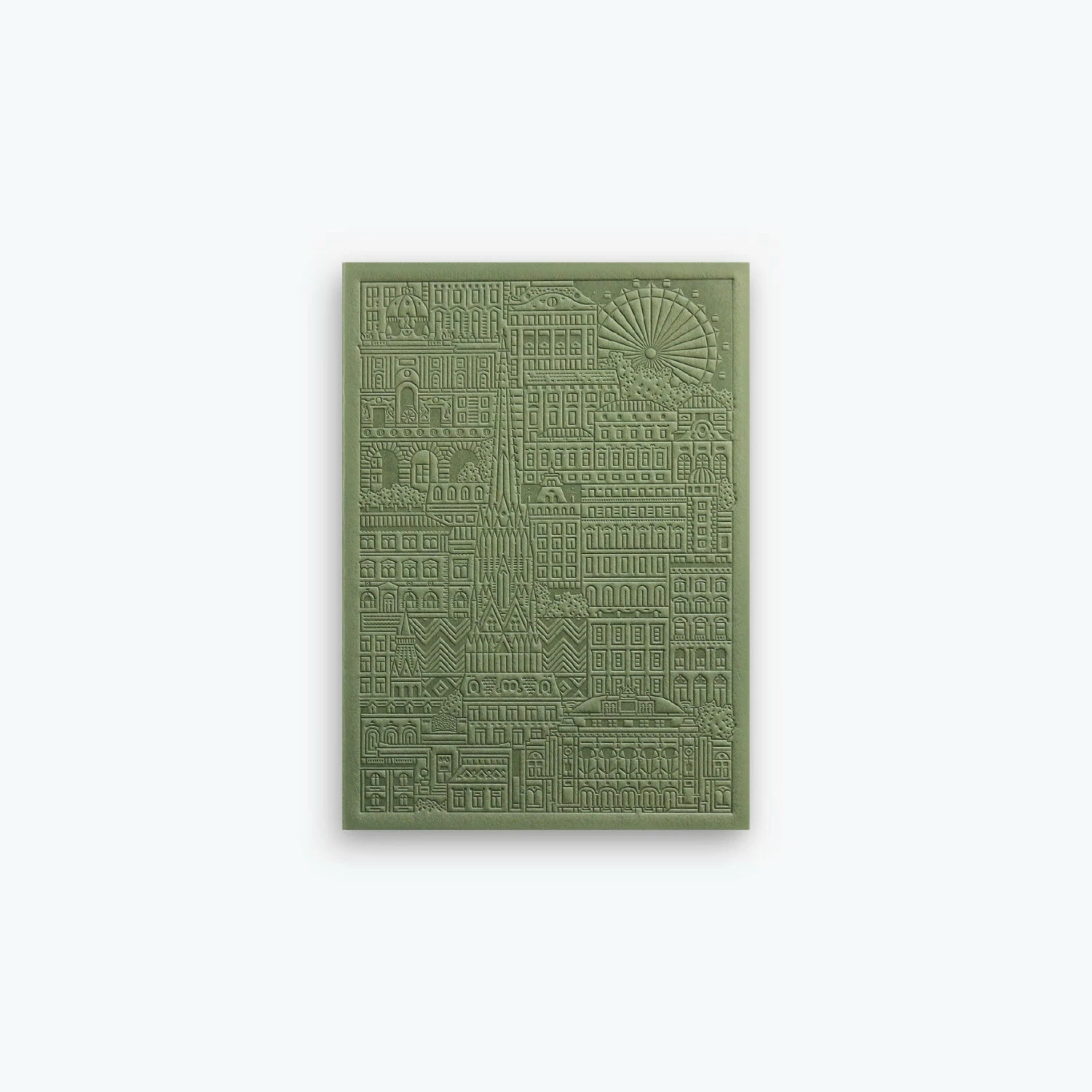 The charming city of ViennaΒ is intricately inscribed into this high-quality notebook. TheΒ green cover features iconic landmarks includingΒ the Vienna State Opera, Karlskirsche, Riesenrad and Stephansdom Cathedral β how many can you find?
