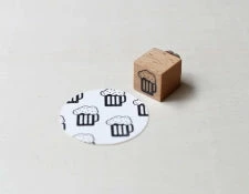 Material: varnished beech with motif sticker,Β the rubber stamp is mounted on a cushioning layer of foam.