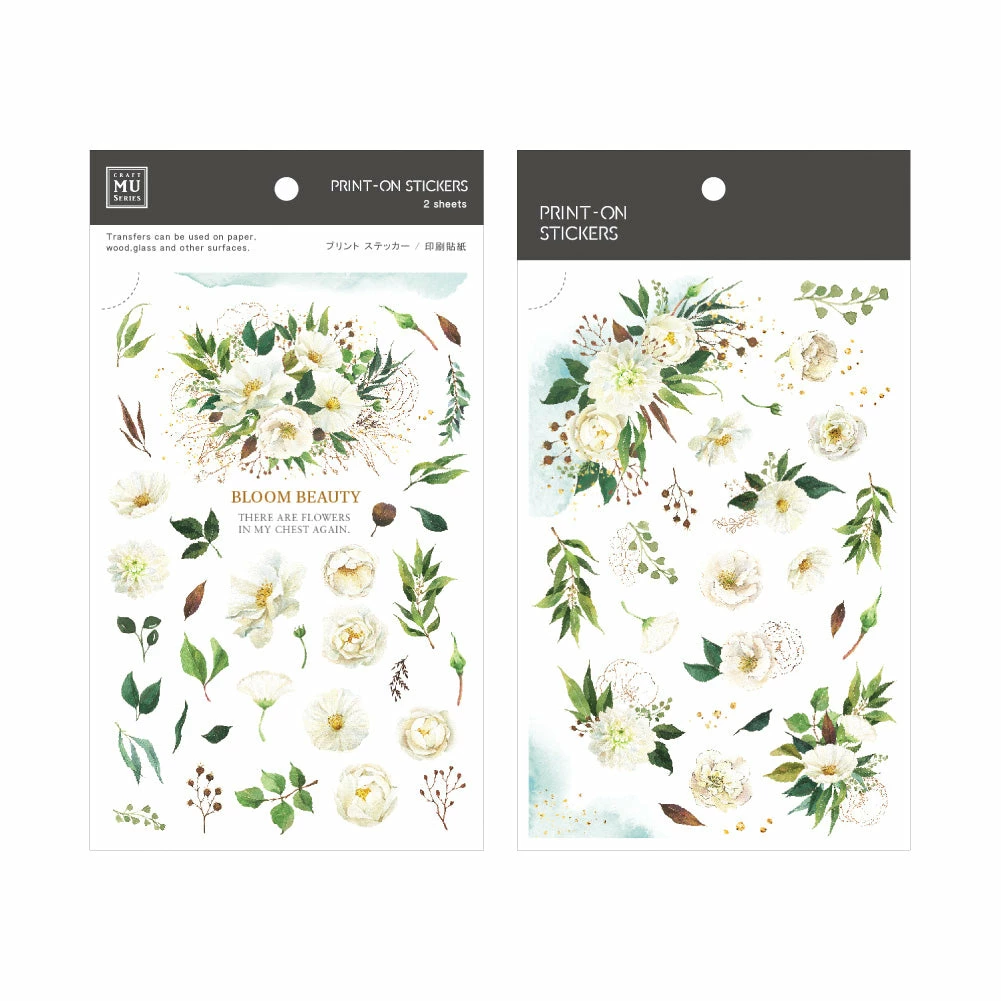 Unlike other sticker, the Print On Sticker do not have a sticky back and are applied by applying pressure to the sticker with a wooden transfer stick (eg. MU Print On Wooden Stick). The stickers appear printed on the surface vs. applied. They can be applied on paper, wood, glass, etc.