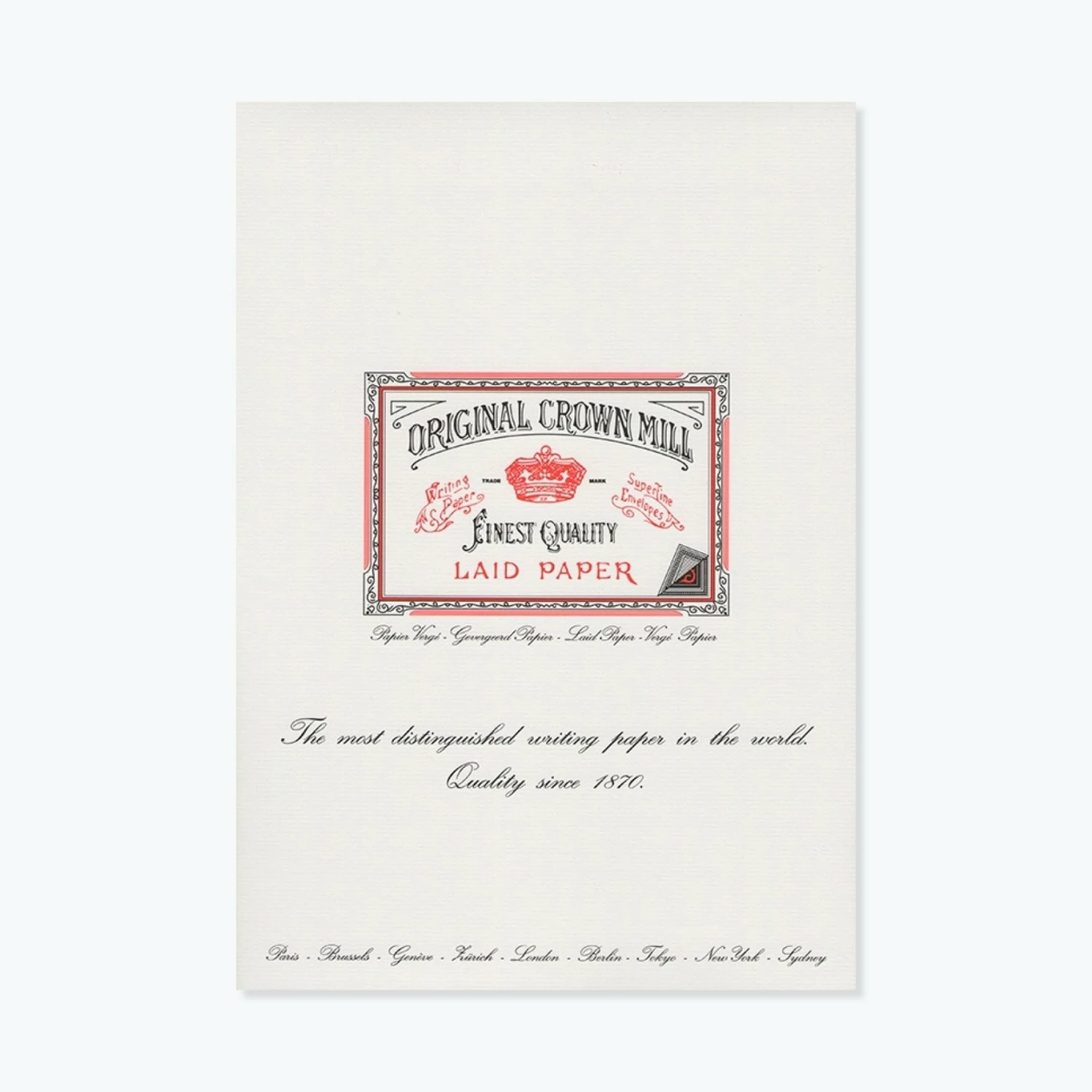 Made in Belgium, the A4Β Crown MillΒ writing padΒ has 50 sheets of white,Β laid paper thatΒ is ideal for personalised stationery, letter writing and invitations.Β LightlyΒ marked with long, thin parallelΒ lines that areΒ imparted by the manufacturing process, laid paper is theΒ gold standard in the world ofΒ correspondenceΒ paper.Β