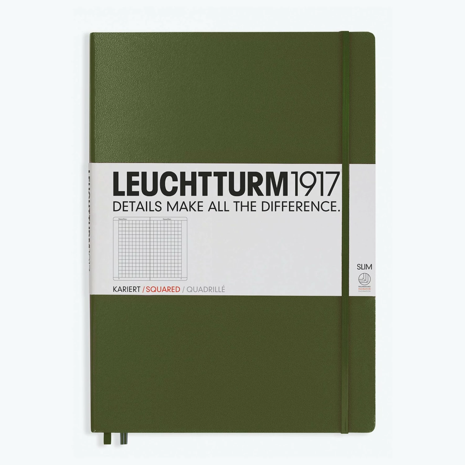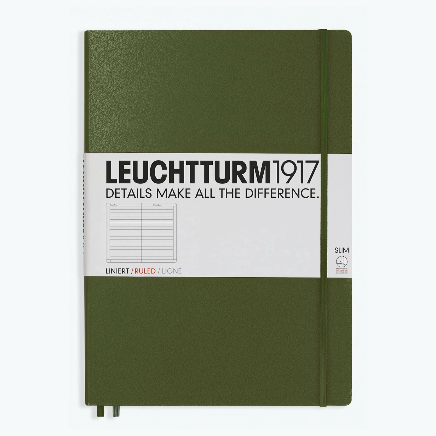 The army Leuchtturm1917 A4+ is a simple yet sophisticated notebook, making it an ideal companion for all walks of life. Leuchtturm1917 notebooks are designed very carefully down to the last detail. The pages are numbered and each page has space at the top for the date, while a blank table of content makes it easy to organise notes. There are several perforated pages and a gusseted pocket at the back of the notebook, as well as a set of self-adhesive stickers for labelling and archiving.