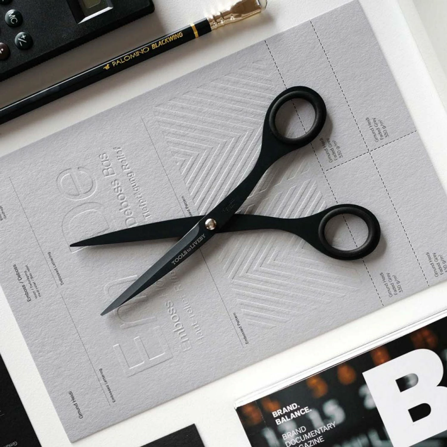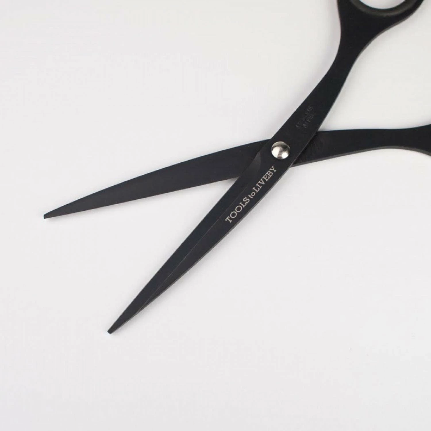 TheΒ Tools to LivebyΒ scissors are simple and timeless in design. They are made from Japanese stainless steel with a comfortable rubber handle. Each pair is etched with a branded logo and comes in a hot foiled protective sleeve.Β This matt black styleΒ is coated withΒ Teflon coating to prevent build up of glue residue.