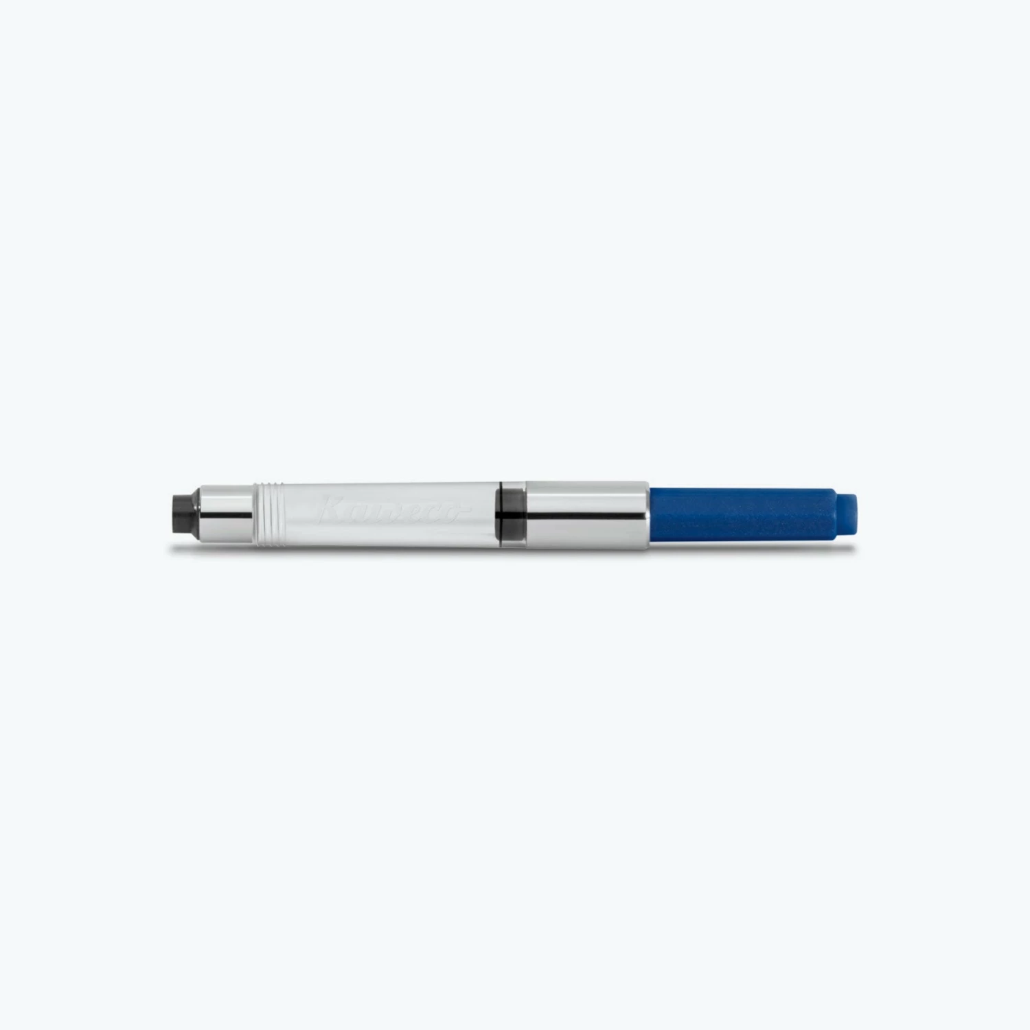 TheΒ midnight blueΒ KawecoΒ piston converter is used to fill a fountain pen with bottled ink.Β It is made from plastic, has a capacity of 0.7mL and is an international fit so is compatible with any brand/pen that uses this standard including the KawecoΒ Perkeo,Β Student,Β SpecialΒ andΒ Supra.Β
