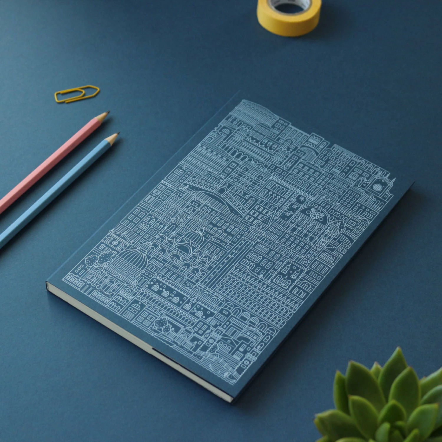 Venice, the cityΒ built on water, is intricately inscribed into this high-quality notebook. TheΒ yellow cover features iconic landmarks including the canals, Rialto Bridge, Saint Markβs Basillica and Dogeβs Palace β how many can you find?