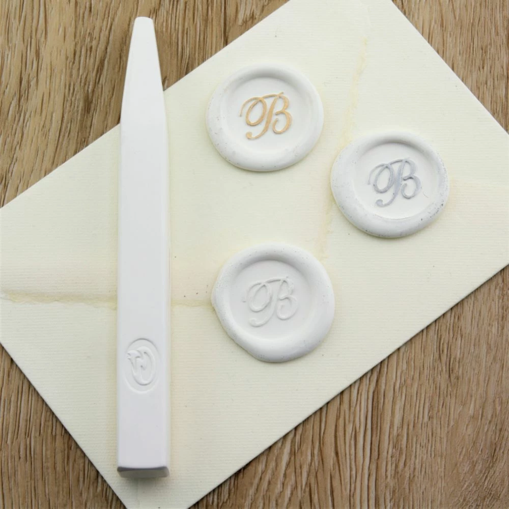 White sealing wax by Bortoletti from Venice, Italy. The Bortoletti sealing wax is made from natural resins and pigments using a traditional recipe. Each extra thin sealing wax bar is individually wrapped and can make approximately 20 seals. Bortoletti sealing wax can be heated directly or using the Bortoletti sealing wax heater.