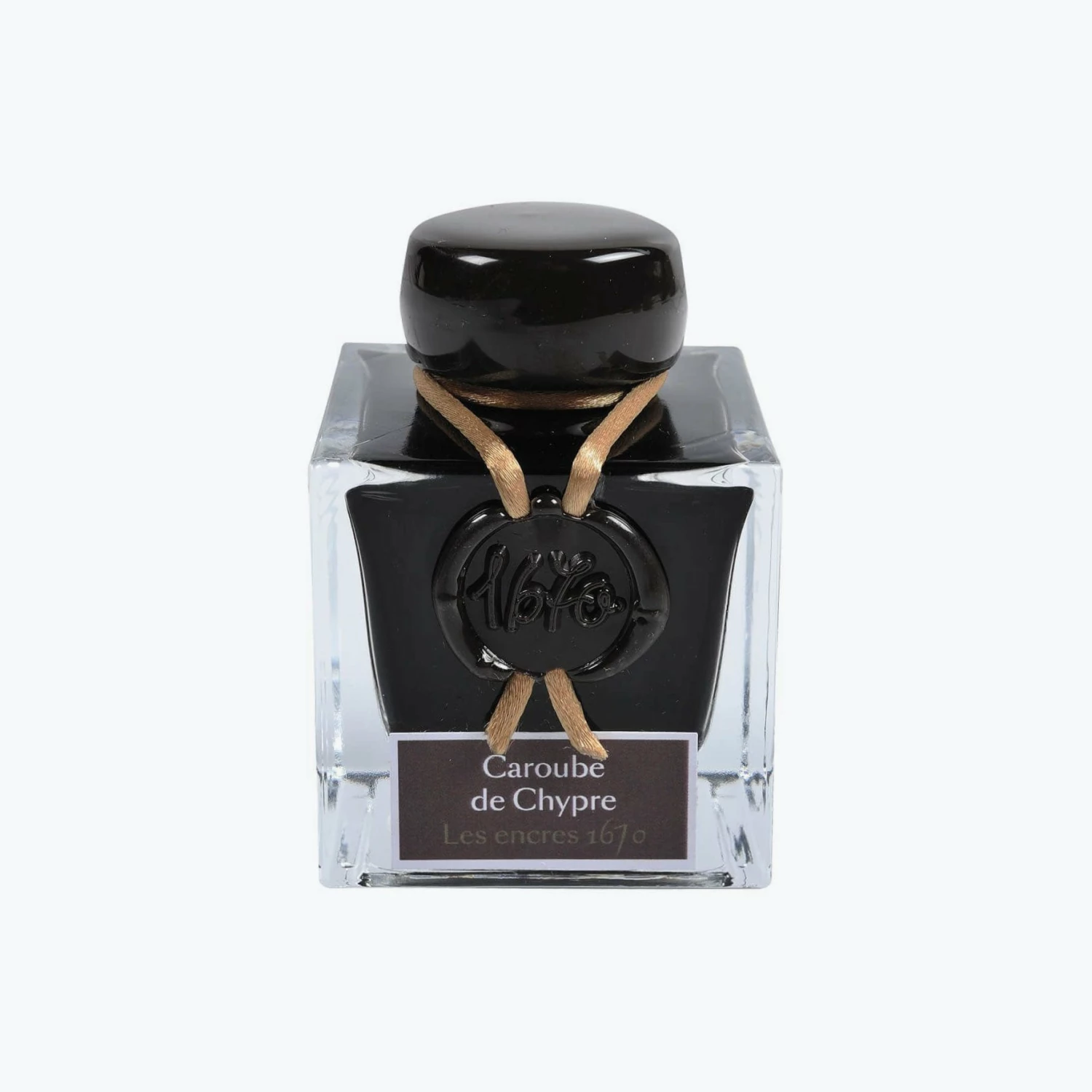 Carob of Cyprus is part of a collection of 8 inks that were first created in 2010 to celebrate J. Herbin’s 340th anniversary, designed to represent the company’s rich history. The anniversary inks are divided into two lines – the 1670 inks celebrate Herbin’s founding, while the 1798 inks celebrate the year J. Herbin opened in Paris and expanded their ink production.