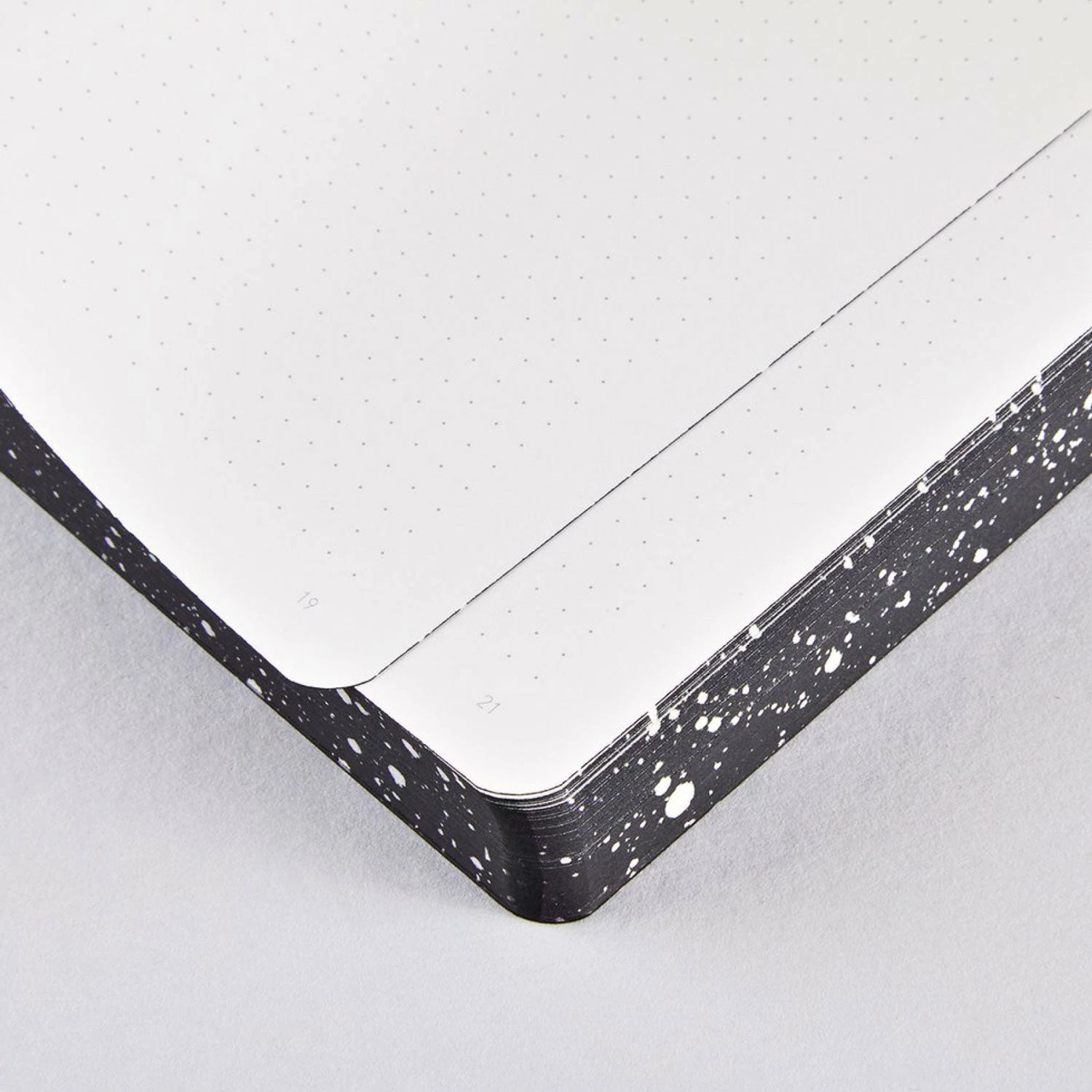 The Nuuna Milky Way notebook contains 256 pages of 3.5mmΒ grey dot grid, which Β offers guidance without interference, making it perfect for writing, drawing or journalling.Β The eye catching design is inspired by the night sky and is applied via silk-screen printing, a technique made famous by Andy Warhol.