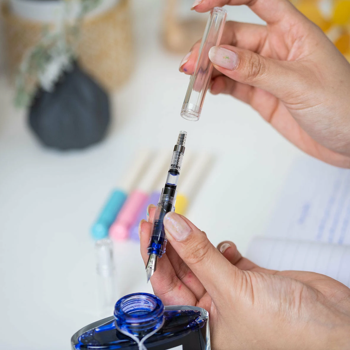 The Pilot Converter 40 features agitator beads inside the ink reservoirΒ to help maintain a steady ink flow. To draw ink out of the bottle simple, twist the top of the converter. It has a capacity of 0.4mL and is compatible withΒ any ofΒ Pilot’s fountain pens that use a converter.