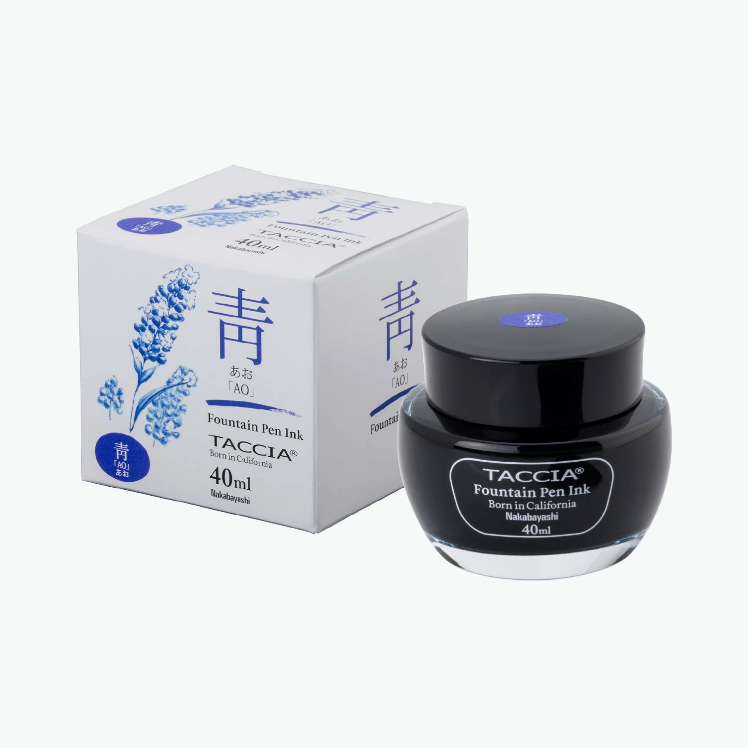 TacciaΒ ao (blue) fountain pen ink is made in Japan and inspired by the Japanese way of seeing colours in a very pure, honest, and innocent way. It is a water-soluble, dye ink with rich expression and a balance of permeability and viscosity so that it flows nicely on paper. It is carefully formulated with a neutral pH to avoid any damage to the pen nib. Taccia ink comes in a 40mL bottle and the packaging is designed by Japanese fountain pen illustrator, Hiroshi Sato.