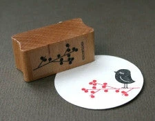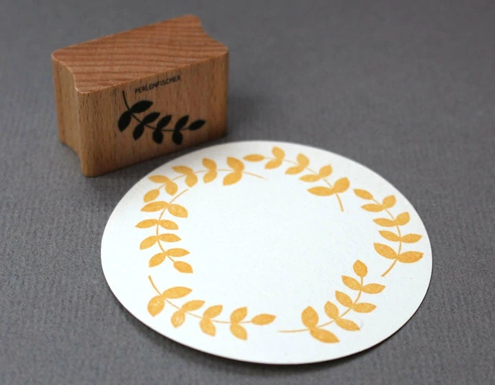 Material: varnished beech with motif sticker,Β the rubber stamp is mounted on a cushioning layer of foam.