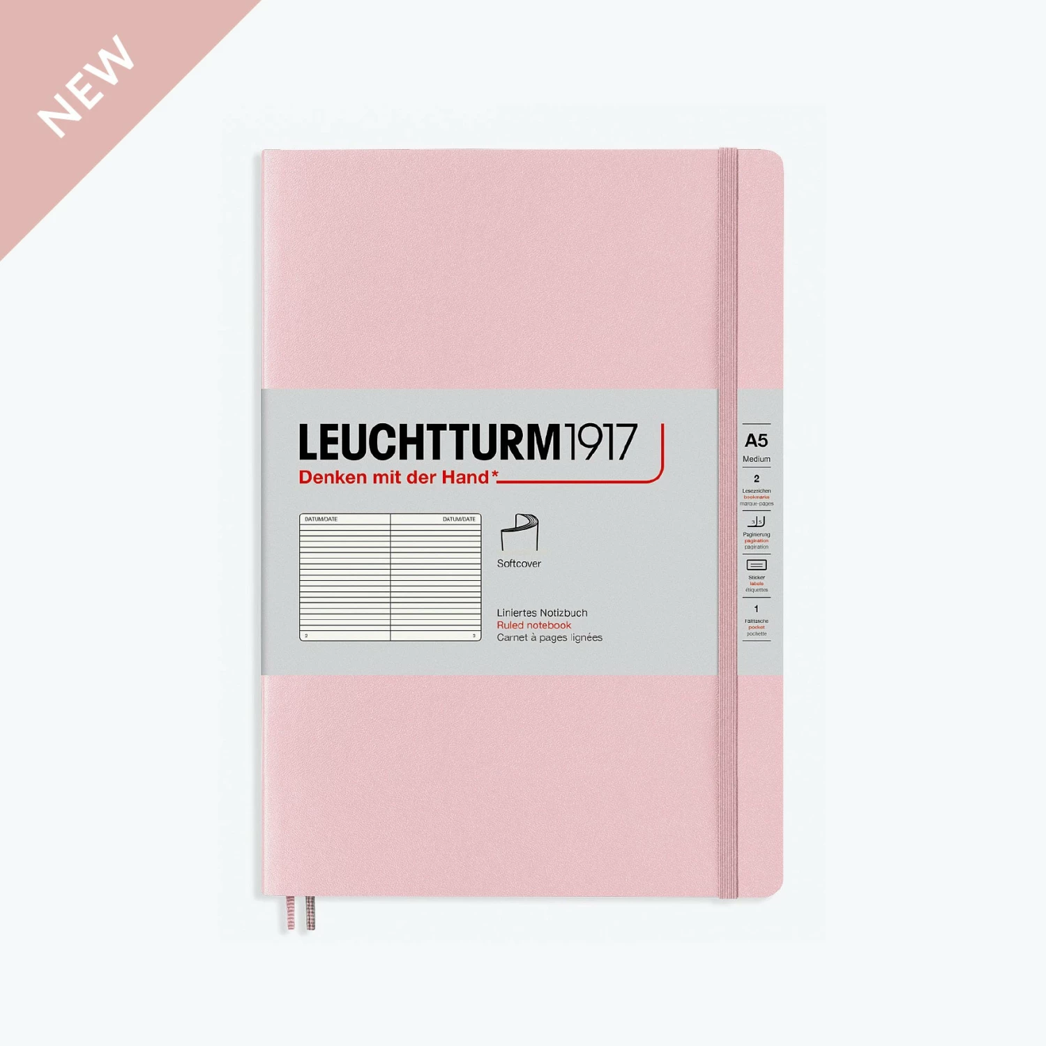 The Powder Leuchtturm1917 A5 is a simple yet sophisticated softcover notebook, making it an ideal companion for all walks of life. Softcover notebooks are lighter and more flexible but have the same great features.