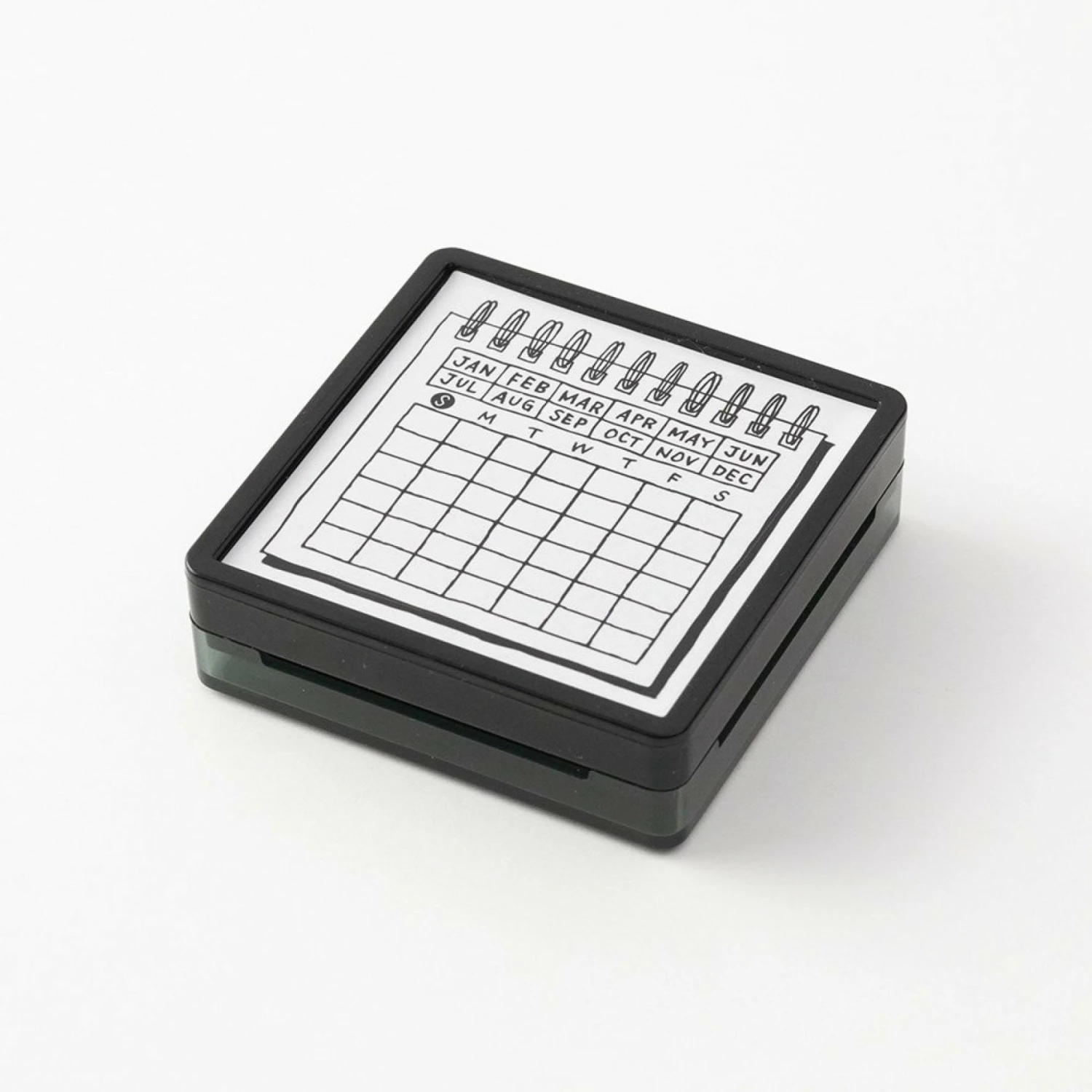 The calendarΒ MidoriΒ self-inking stamp is perfect for decorating, organising and keeping track.Β TheΒ design has space to fill in tasks, lists or notes and can be coloured in usingΒ theΒ Midori paintable brush pensΒ asΒ theΒ oil-based, black ink is waterproof.