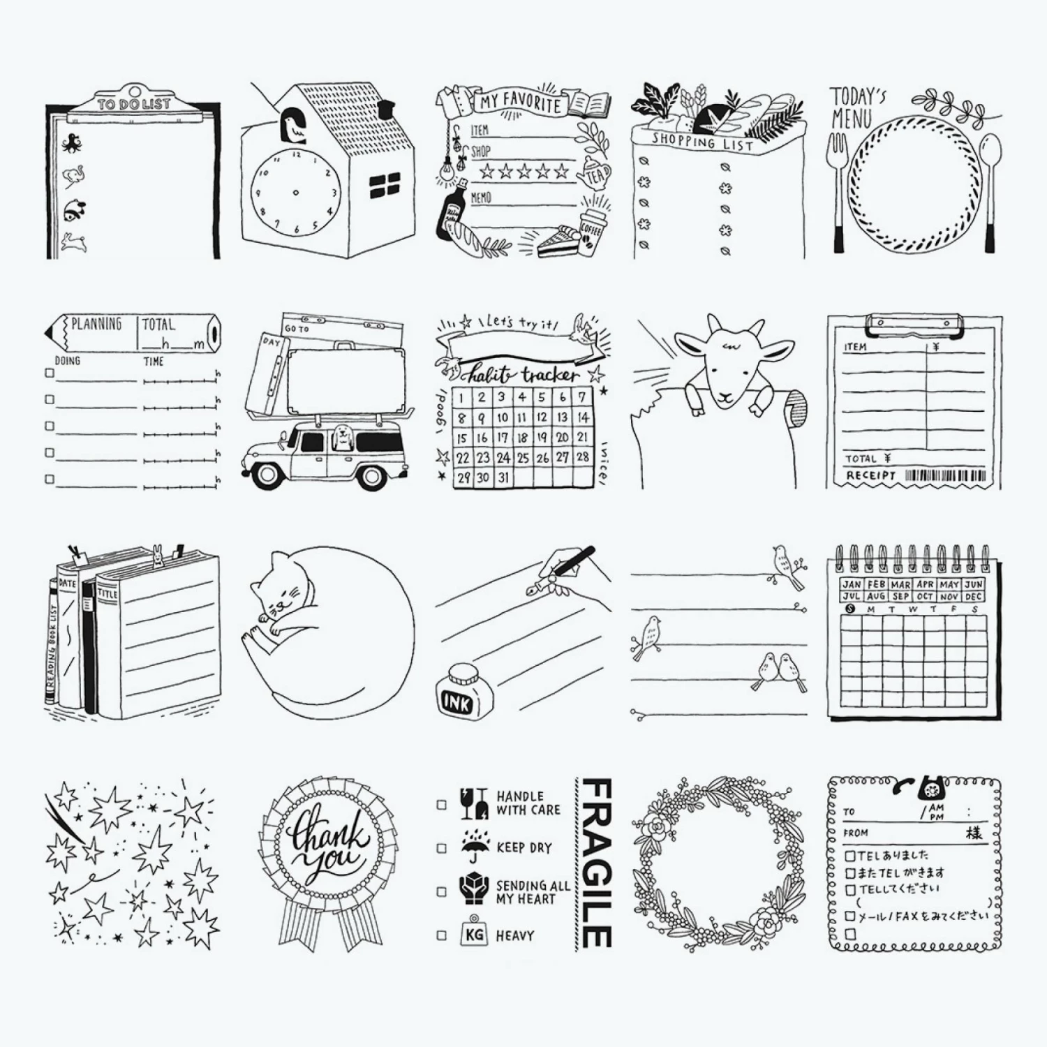 The Midori self inking stampsΒ can be used for journalling, decorating orΒ with theΒ Midori sticky notesΒ or stamp series notebook.
