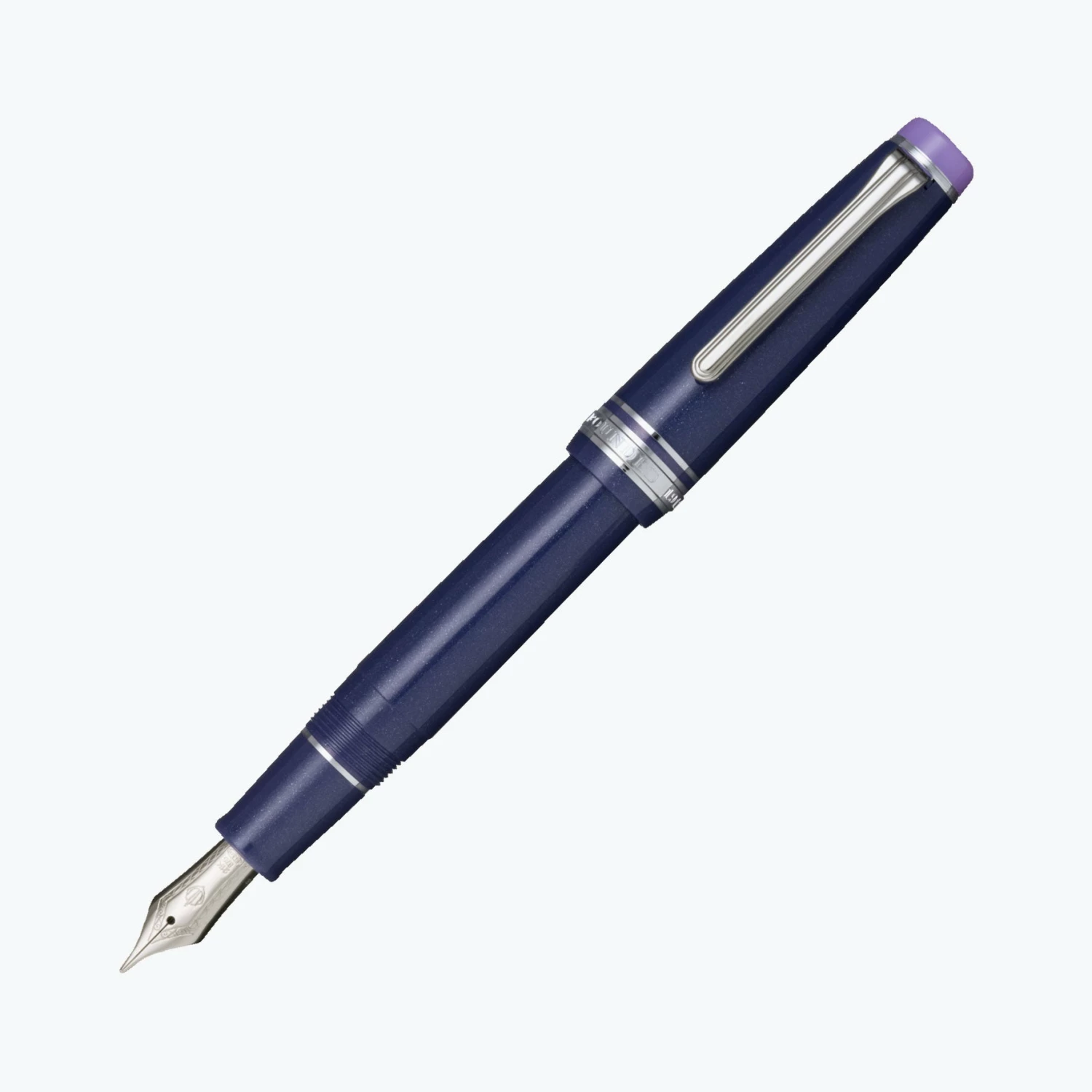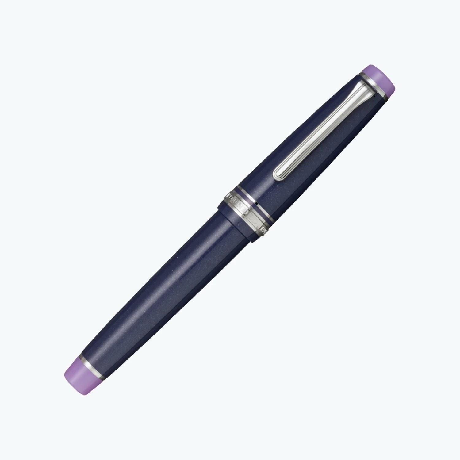 TheΒ SailorΒ StormΒ Over the Ocean is aΒ limitedΒ editionΒ ProGear fountain pen that features aΒ metashineΒ navy barrel and cap,Β complemented by silver-plated accents. The contrastingΒ purpleΒ coloured end cap features the Sailor anchor logo.