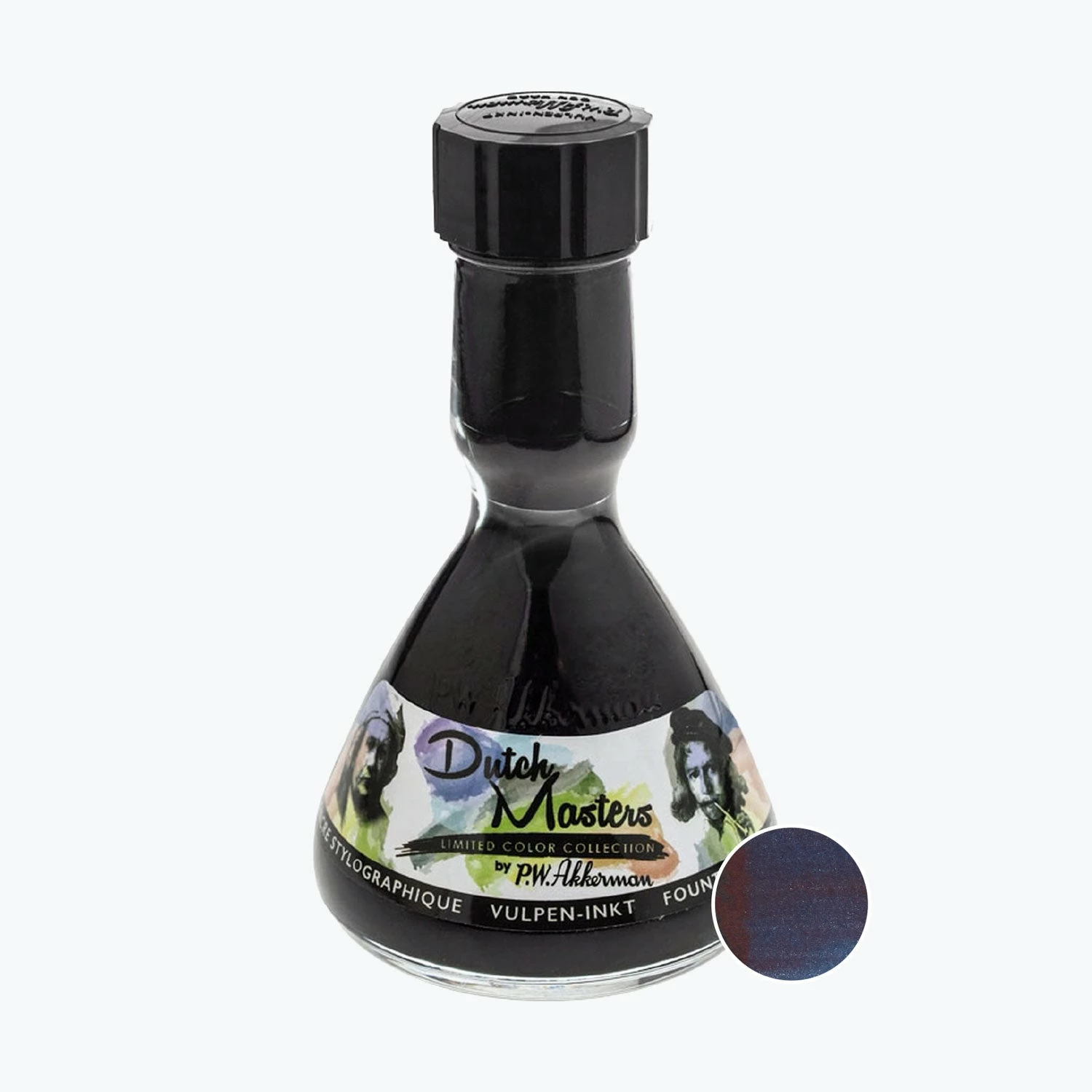 The Dutch MastersΒ bottle contain 120mL of ink, which is double the size of the regular bottle.Β TheΒ P.W. AkkermanΒ ink bottle is very unique as it fills by tipping the bottle upside down so that ink flows from the large bottom section, into a small upper section. When you tip the bottle back up, a small marble rests in the neck of the bottle to create a reservoir, making it easy to fill the fountain pen.Β