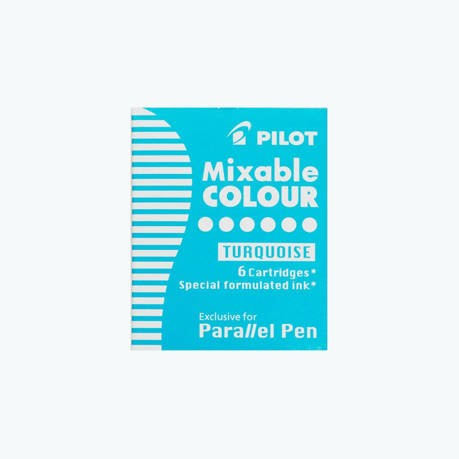 The turquoiseΒ PilotΒ mixable colour ink cartridges are for use with Pilot Parallel Pens exclusively. They are filled with a special formulated dye based ink that can be mixed with other colours to create a gradient effect.Β