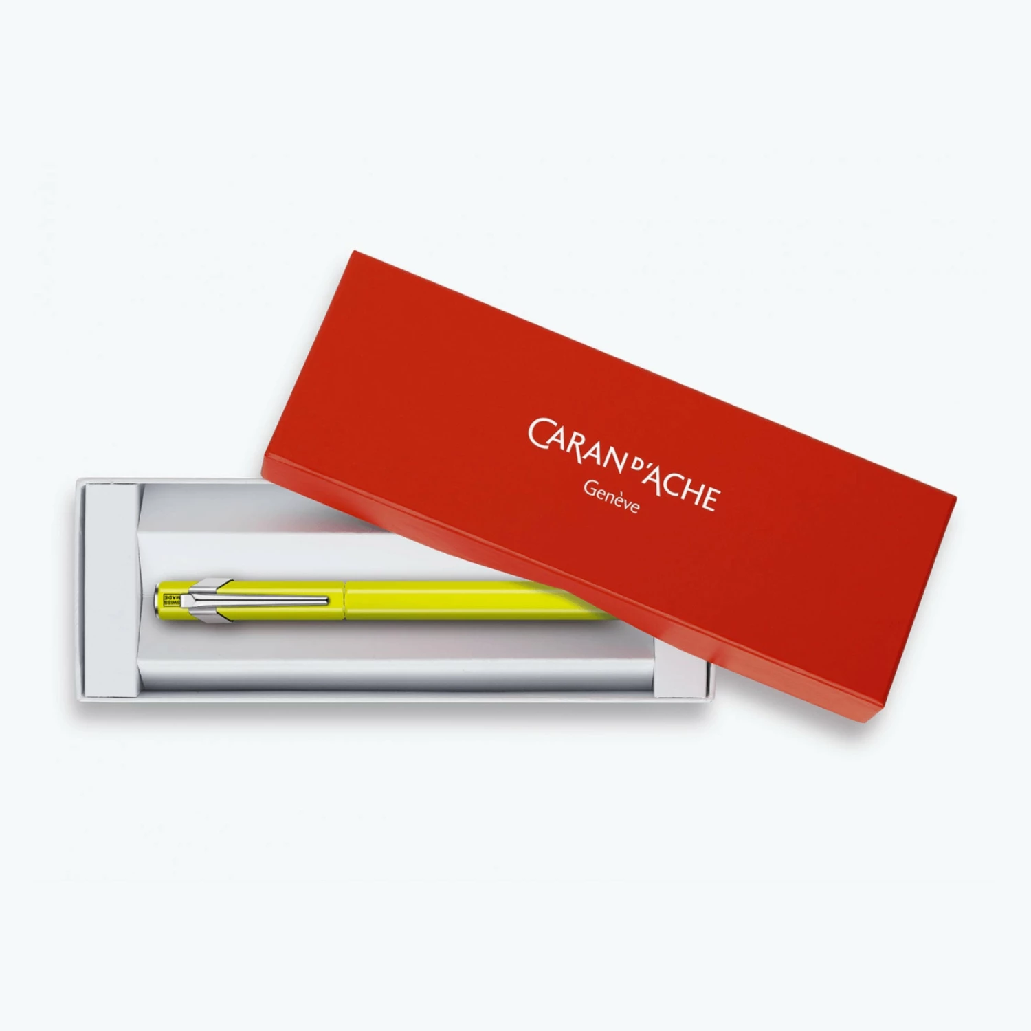 TheΒ fluo yellowΒ Caran d’AcheΒ 849 fountain pen is a contemporary take on a traditional writing instrument. It is Swiss made and features a hexagonal, lightweight yet robust aluminium body with a click in cap,Β withΒ theΒ Caran d’Ache isotype engraved on the button.Β